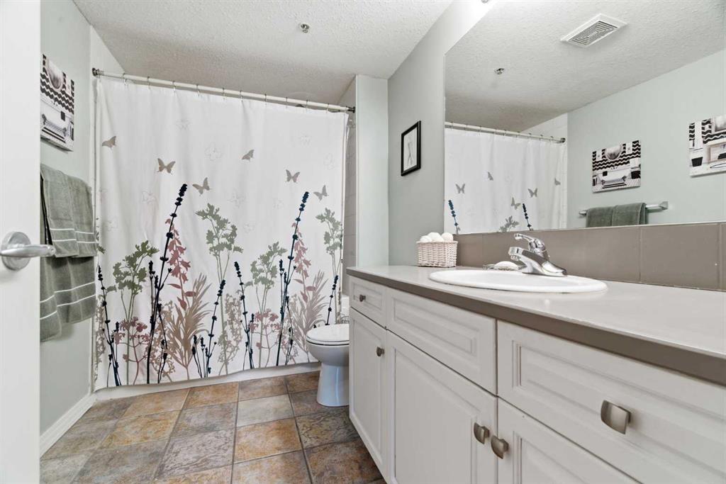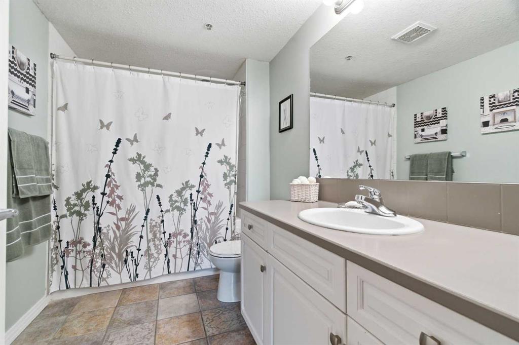 The generous primary bedroom features a walk-through closet leading to a beautiful 4-piece ensuite with soaker tub and tiled floors. A well-sized second bedroom and full 3-piece bath make this ideal for hosting guests or creating a dedicated home office. Fresh new paint throughout gives the entire unit a bright, move-in-ready feel.