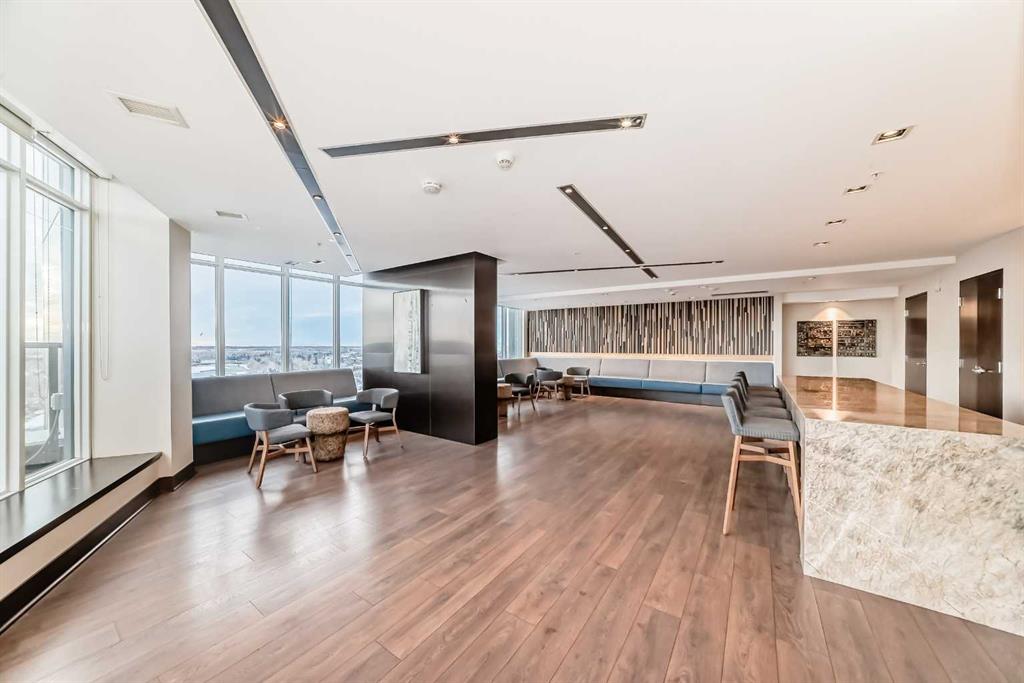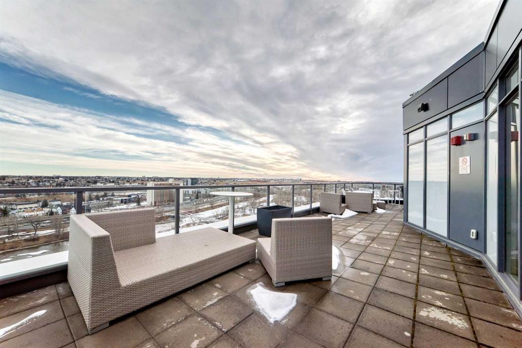 Residents enjoy an impressive range of amenities including 24-hour concierge service, a fitness centre, yoga studio, guest suite, visitor parking, conference room, TV lounge, pool table lounge, and a spacious party room with kitchen. The 18th-floor rooftop terrace offers stunning views of the Bow River and downtown skyline, complete with BBQ areas for entertaining.