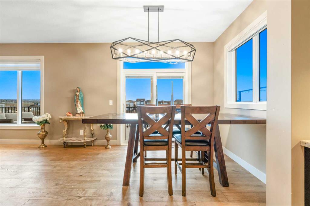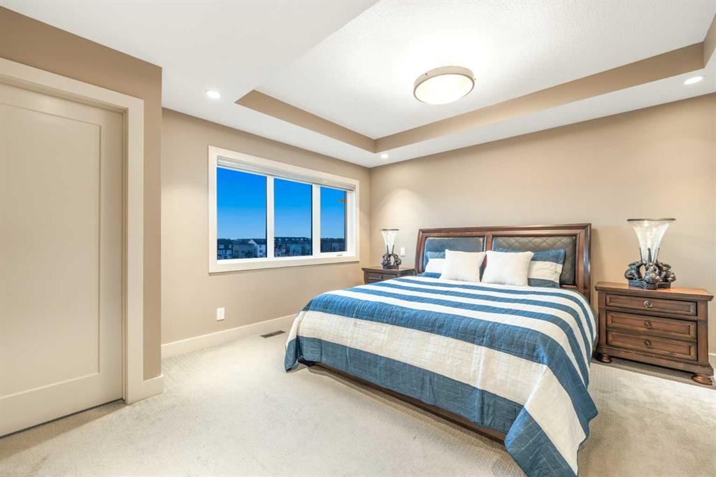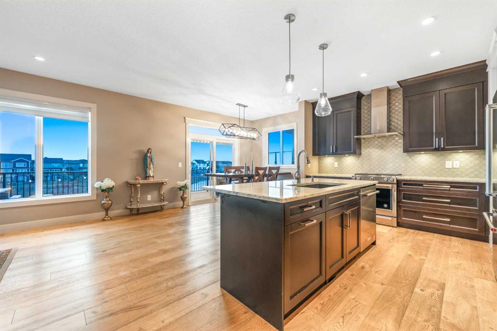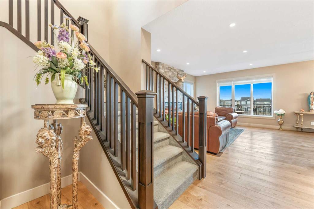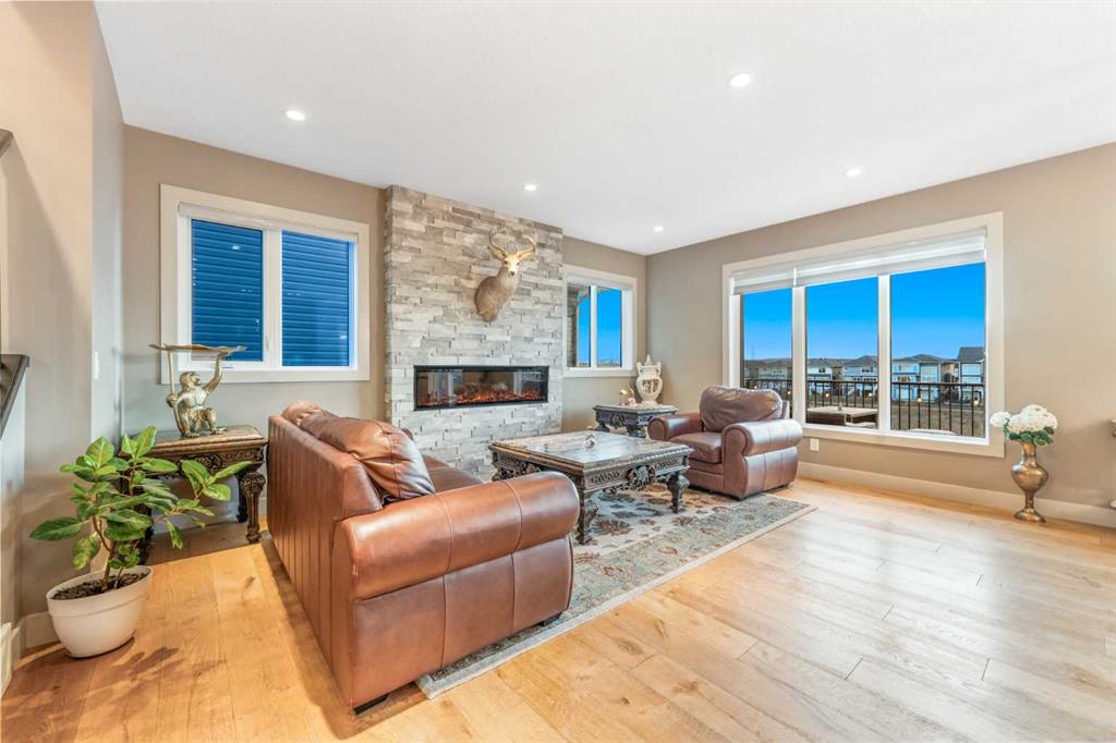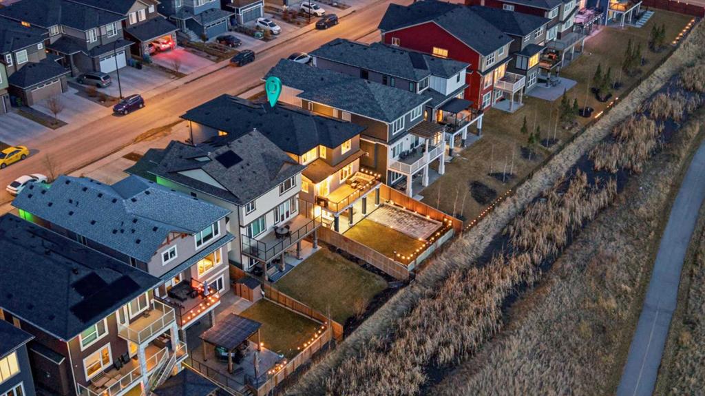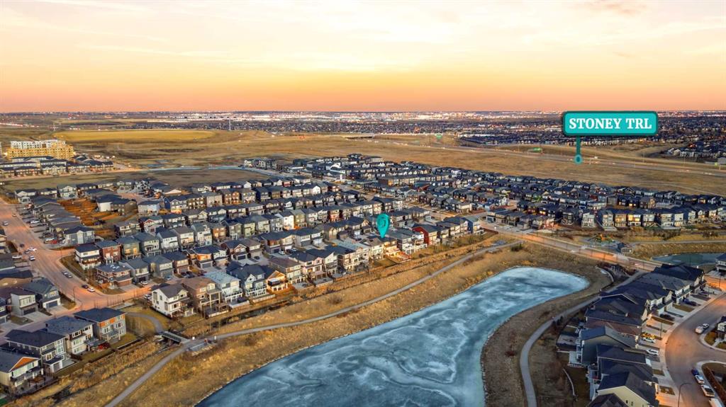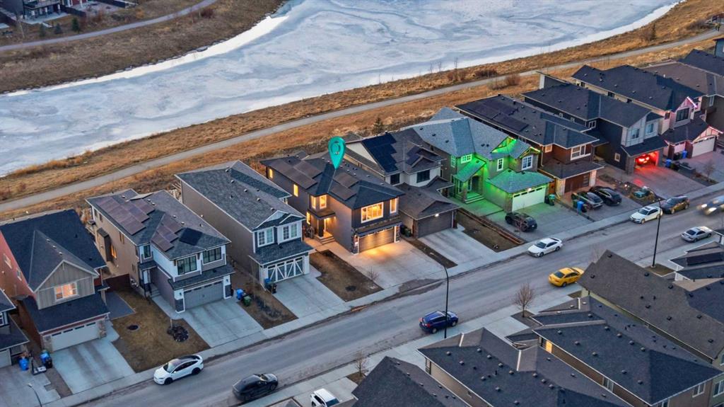 Welcome to this exceptional estate home, built by Arcuri Homes and crafted with superior quality and attention to detail that truly set it apart. Built on a higher-grade specification, this home features premium upgrades rarely found, including Lux Windows, solar panels, and durable stucco siding. Perfectly positioned backing onto a serene pond with a sunny west-facing backyard, this home offers breathtaking views and the ideal setting to enjoy evening sunsets and summer BBQs. The outdoor space is thoughtfully designed with concrete stairs, a stamped concrete patio, and a Duradek-finished deck conveniently located off the dining area. Inside, the home showcases hardwood flooring throughout the main floor, complemented by elegant 8-foot doors and 9-foot ceilings on both the main floor and in the basement, enhancing the sense of space and luxury. The chef-inspired kitchen is paired with a spice kitchen, perfect for heavy cooking while keeping your main kitchen pristine. The main floor also features a dedicated office/den, ideal for those who enjoy working from home. Upstairs, you’ll find a generous bonus room along with three spacious bedrooms. The primary suite is a true retreat, offering breathtaking pond views, a luxurious 6-piece ensuite with his-and-her sinks, a custom standing shower, a standalone Jacuzzi tub, and a large walk-in closet. The two additional bedrooms are also generously sized, perfect for family living. Upper floor laundry adds everyday convenience, making household tasks effortless. Wake up to ever-changing scenic views—from birds chirping in the summer, to a beautiful frozen pond in winter, and vibrant fall colours, with even the chance to enjoy aurora lighting from your bedroom. The fully developed basement features an illegal suite complete with one bedroom and a separate laundry, making it ideal for extended family or potential rental use. The double-attached garage is fully finished with insulation, drywall, and epoxy flooring, while the extended driveway accommodates up to 3 additional vehicles, providing a total of 5-car parking. Additional highlights include Gemstone exterior lighting, adding both beauty and functionality year-round. The location is truly unbeatable—just 10–15 minutes to CrossIron Mills Mall, 12–15 minutes to Calgary International Airport, and close to Carrington Plaza for everyday shopping. Entertainment is just around the corner with Landmark Cinemas only 9 minutes away, and easy access to Stoney Trail (Calgary Ring Road) ensures seamless connectivity across the city. This stunning home perfectly blends luxury, functionality, breathtaking views, and an incredible location, making it a rare opportunity you don’t want to miss. Call today to book your private viewing!