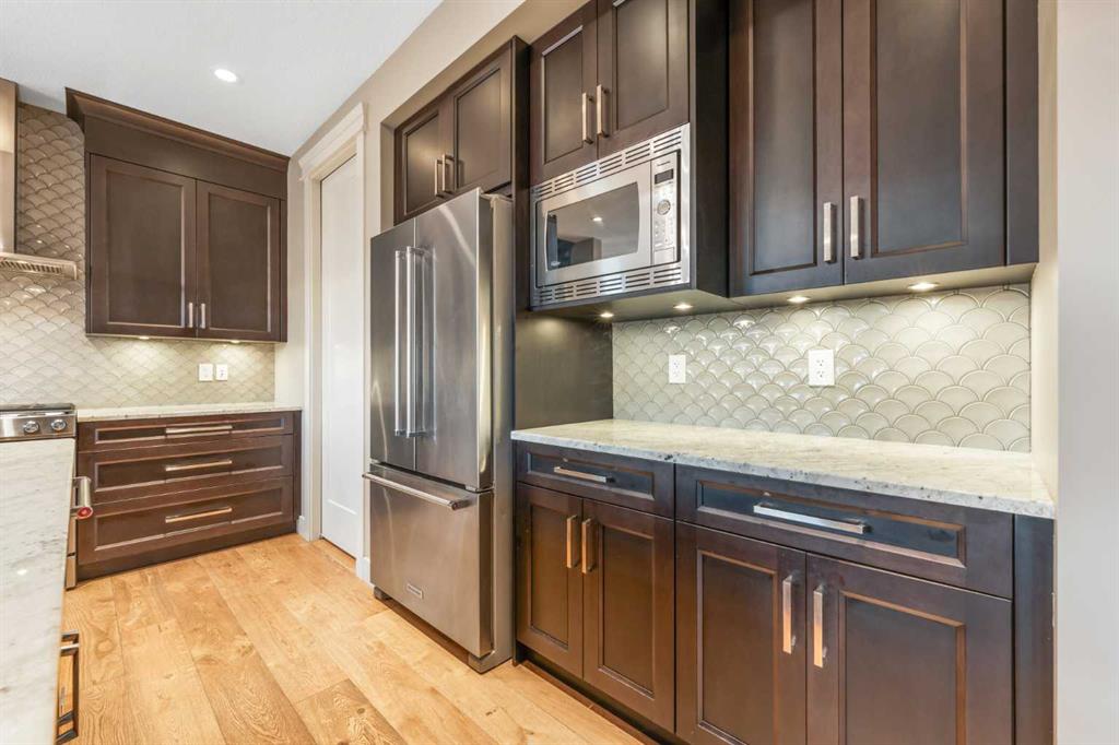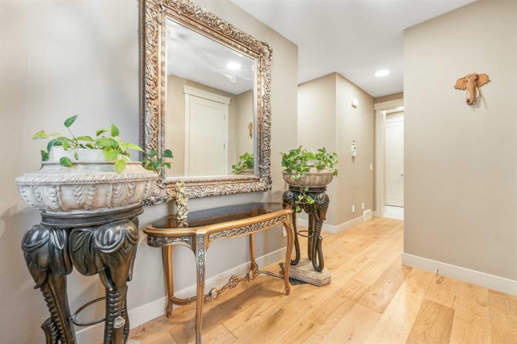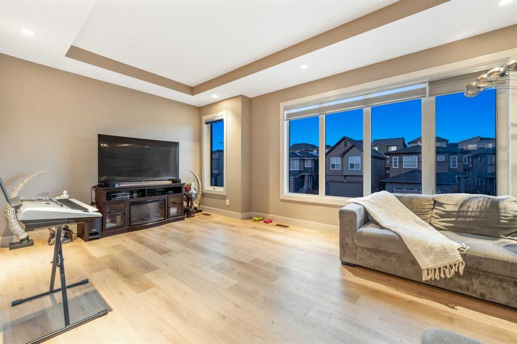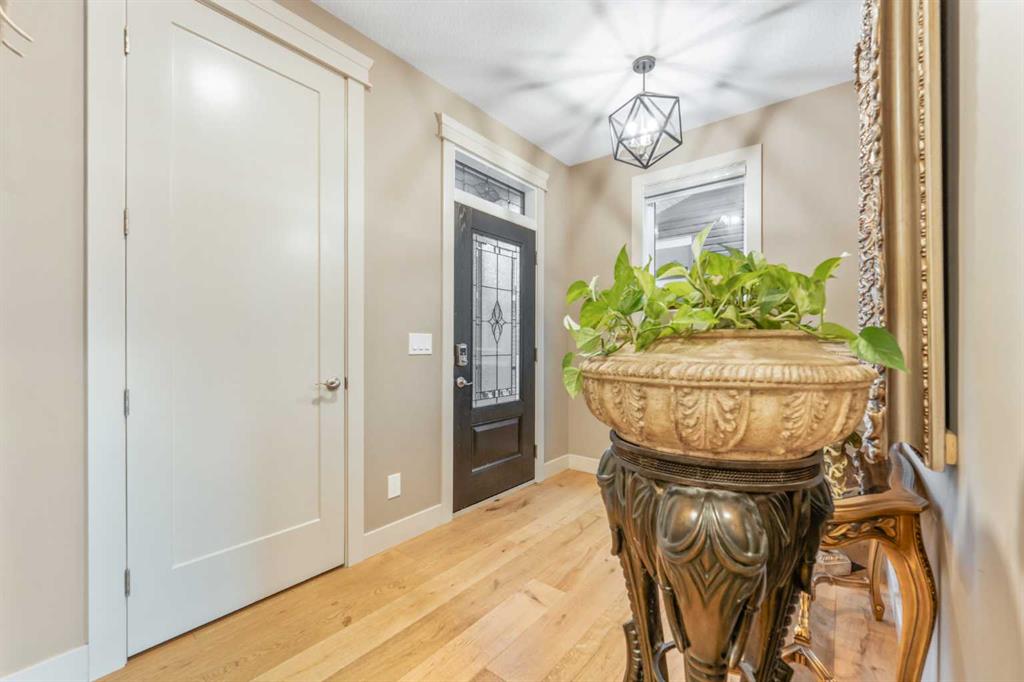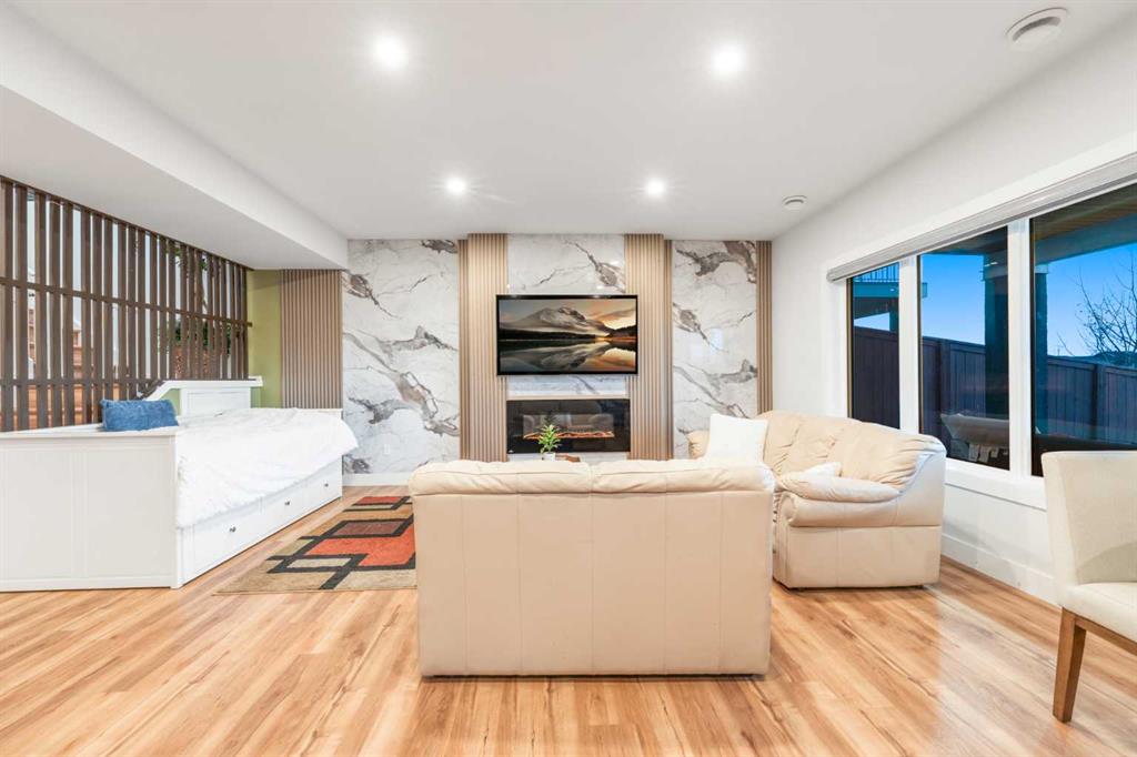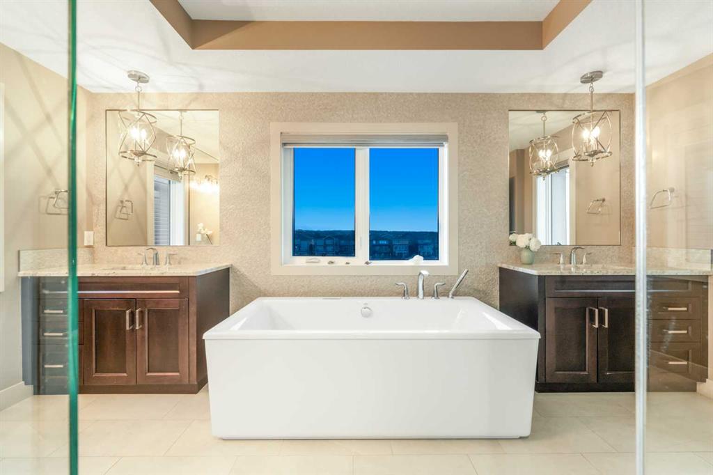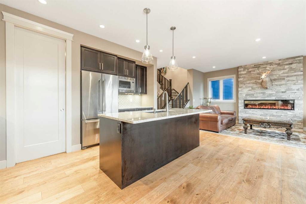 Welcome to this exceptional estate home, built by Arcuri Homes and crafted with superior quality and attention to detail that truly set it apart. Built on a higher-grade specification, this home features premium upgrades rarely found, including Lux Windows, solar panels, and durable stucco siding. Perfectly positioned backing onto a serene pond with a sunny west-facing backyard, this home offers breathtaking views and the ideal setting to enjoy evening sunsets and summer BBQs. The outdoor space is thoughtfully designed with concrete stairs, a stamped concrete patio, and a Duradek-finished deck conveniently located off the dining area. Inside, the home showcases hardwood flooring throughout the main floor, complemented by elegant 8-foot doors and 9-foot ceilings on both the main floor and in the basement, enhancing the sense of space and luxury. The chef-inspired kitchen is paired with a spice kitchen, perfect for heavy cooking while keeping your main kitchen pristine. The main floor also features a dedicated office/den, ideal for those who enjoy working from home. Upstairs, you’ll find a generous bonus room along with three spacious bedrooms. The primary suite is a true retreat, offering breathtaking pond views, a luxurious 6-piece ensuite with his-and-her sinks, a custom standing shower, a standalone Jacuzzi tub, and a large walk-in closet. The two additional bedrooms are also generously sized, perfect for family living. Upper floor laundry adds everyday convenience, making household tasks effortless. Wake up to ever-changing scenic views—from birds chirping in the summer, to a beautiful frozen pond in winter, and vibrant fall colours, with even the chance to enjoy aurora lighting from your bedroom. The fully developed basement features an illegal suite complete with one bedroom and a separate laundry, making it ideal for extended family or potential rental use. The double-attached garage is fully finished with insulation, drywall, and epoxy flooring, while the extended driveway accommodates up to 3 additional vehicles, providing a total of 5-car parking. Additional highlights include Gemstone exterior lighting, adding both beauty and functionality year-round. The location is truly unbeatable—just 10–15 minutes to CrossIron Mills Mall, 12–15 minutes to Calgary International Airport, and close to Carrington Plaza for everyday shopping. Entertainment is just around the corner with Landmark Cinemas only 9 minutes away, and easy access to Stoney Trail (Calgary Ring Road) ensures seamless connectivity across the city. This stunning home perfectly blends luxury, functionality, breathtaking views, and an incredible location, making it a rare opportunity you don’t want to miss. Call today to book your private viewing!