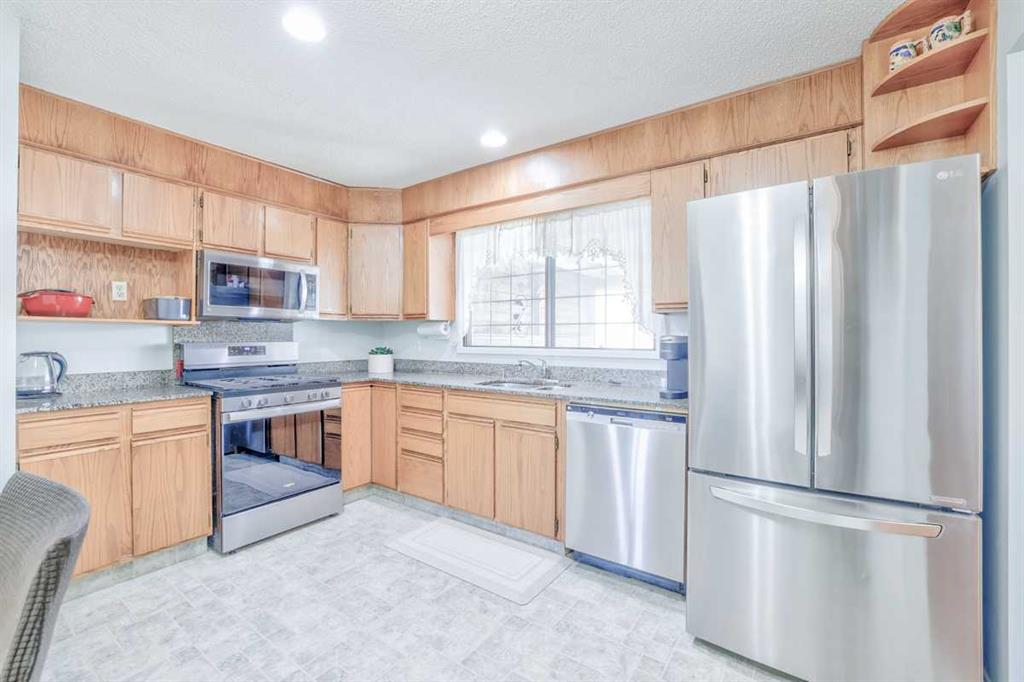 Pride of ownership is evident throughout this custom-built home, where thoughtful design and meticulous care create a welcoming and highly functional sanctuary. An inviting main level centres around a full-height brick fireplace that anchors the living space while oversized windows draw in natural light throughout the day, enhancing both comfort and ambiance. Gleaming upgraded vinyl flooring adds durability and style underfoot, making everyday living both practical and polished. The seamless flow continues into the dining area where French doors extend living outdoors to a covered deck, supporting year-round enjoyment and easy entertaining. A well-designed kitchen features granite countertops, top-of-the-line stainless steel appliances including a Whirlpool gas stove, a window above the sink and space for casual dining, offering both efficiency and connection to the surrounding spaces. The upper level is thoughtfully arranged with a primary bedroom that includes its own private powder room for added convenience, complemented by 2 additional bedrooms and a 4-piece bathroom to support family living. Extra windows stream natural light into the lower level where a spacious rec room invites movie nights, games or flexible daily use, complemented by a 3-piece bathroom. A separate entrance through the garage introduces excellent potential for future development/ Illegal suite or multi-generational living as well as potential for another entrance door to be installed along the North wall. Further flexibility continues in the basement where a bedroom and den provide extra space for guests, a home office or hobbies. Outdoor living is equally well considered with a covered deck that extends seasonal use and a large fenced yard delivers tons of room for children and pets to play. An oversized double attached garage is paired with RV parking and a rear driveway, providing exceptional parking and storage options rarely found at this price point. Mechanical updates including a furnace replaced 5 years ago and a water heater replaced 3 years ago contribute to long-term peace of mind. This phenomenal location adds everyday convenience within walking distance to Guy Weadick School, Annie Foote School and Lester B. Pearson High School, along with an easy walk to the community centre, sports courts, ice rink, exercise park, regional bike pathways and the popular Village Square Leisure Centre, supporting an active and connected lifestyle. Truly an exceptional location for this move-in ready home.