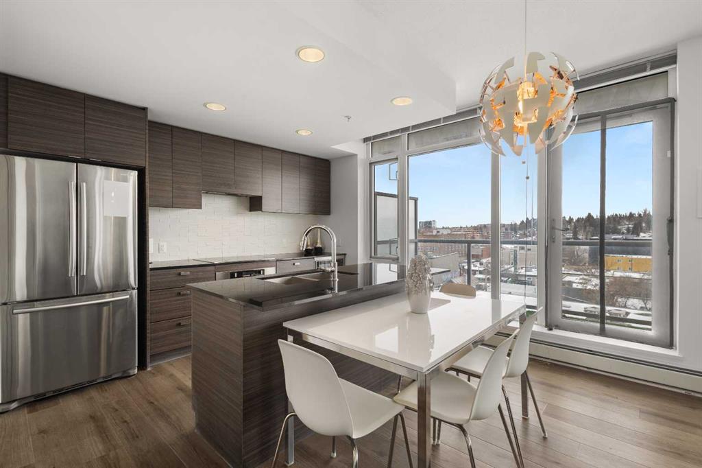 Located in Calgary's hottest district, the heart of the 17th Ave entertainment district. This stunning 2 Bedroom, 2 full Bathroom, SW facing corner unit provides the ultimate lifestyle in the modern Drake building. Easily walk on 17th Ave to 4th Street, explore all of your favorite restaurants, cafe’s and shopping boutiques while leave your car in the underground parking. This sleek open concept condo features granite countertops, stainless steel appliances, large kitchen island, NEW LVP floors and a large open balcony with grass to take in the mountain and city views. The Primary bedroom is spacious with 2 closets and a 4-piece ensuite. In-suite laundry, and a titled storage locker on 2nd level adds to the convenience of daily living. Ideal for professionals, investors and Western Canada Senior High School family.