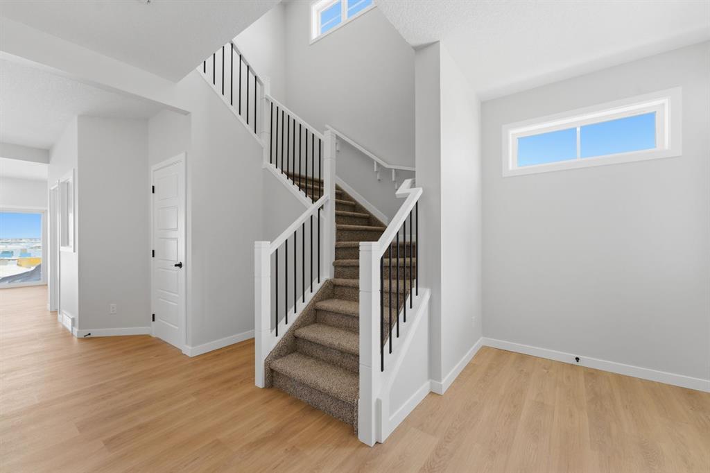 Nestled on a desirable corner lot just steps away from the park, this stunning two-storey home delivers the kind of refined, functional layout. From the moment you step inside, the attention to detail is undeniable. Elegant open railings on both the main and upper floor staircases create a sense of openness and architectural flair that immediately sets the tone for what's to come. The main floor impresses with soaring ceiling-height cabinetry in the chef-inspired kitchen, anchored by a gas range and sleek chimney hood fan — a true entertainer's centrepiece. A built-in microwave keeps countertops clutter-free, while the adjacent spice kitchen is a game-changer for those who love to cook without compromise. The warm glow of an electric fireplace creates an inviting focal point in the living room, perfect for Calgary's cozy evenings. A main-floor den and a full bathroom, complete with a standing shower, add flexibility for guests, a home office, or multigenerational living. Head upstairs and discover a layout designed for real families. The upper floor bonus room, crowned with an elegant tray ceiling, offers the perfect retreat for movie nights or a kids' playroom. The primary bedroom is a sanctuary unto itself, featuring a luxurious 5-piece ensuite where every detail has been considered. Two additional well-appointed bedrooms share a beautifully finished main bathroom — and throughout every bathroom in the home, tile extends to ceiling height, delivering a spa-like sophistication that sets this home apart. The basement is where the smart money is. Featuring a separate side entrance, soaring 9-foot ceilings, and rough-ins already in place, this lower level is primed and ready for future development. The curb appeal doesn't disappoint either — glass inserts in the garage door add a modern, polished touch to the exterior, perfectly complementing the home's traditional character. With park access just around the corner and a premium corner lot offering added privacy and natural light, 84 Lewiston View isn't just a home — it's a lifestyle upgrade. Don't miss your opportunity to own this exceptional property. Book your private showing today.