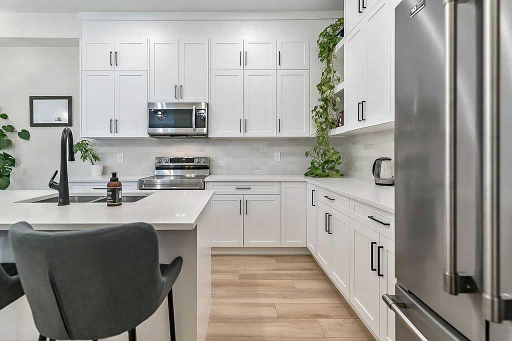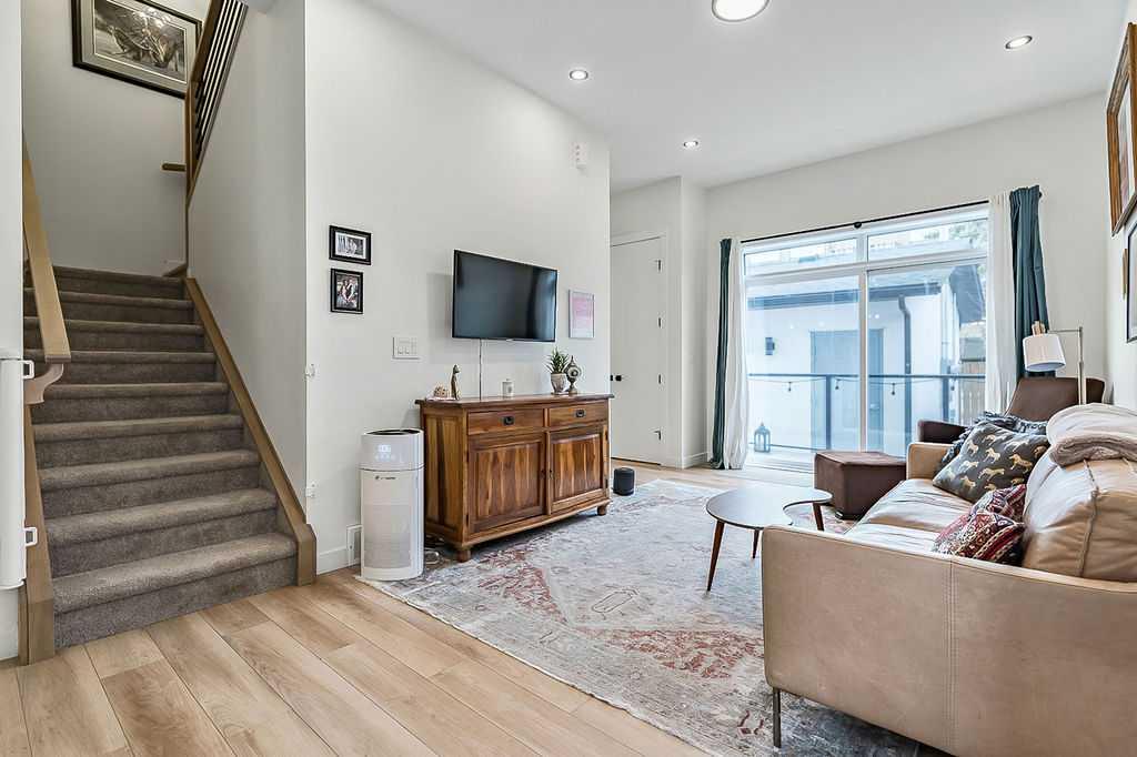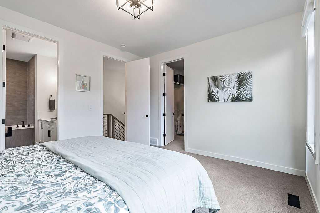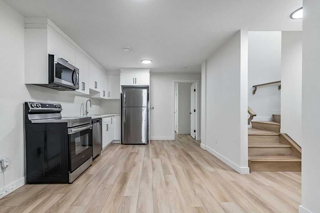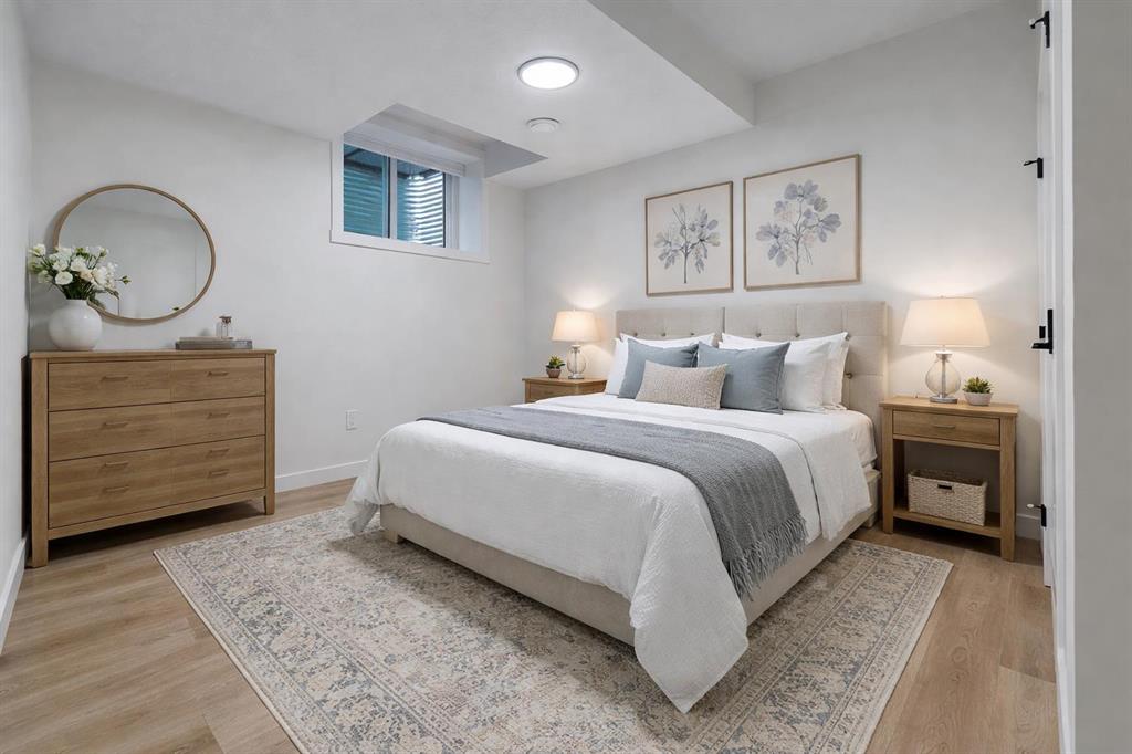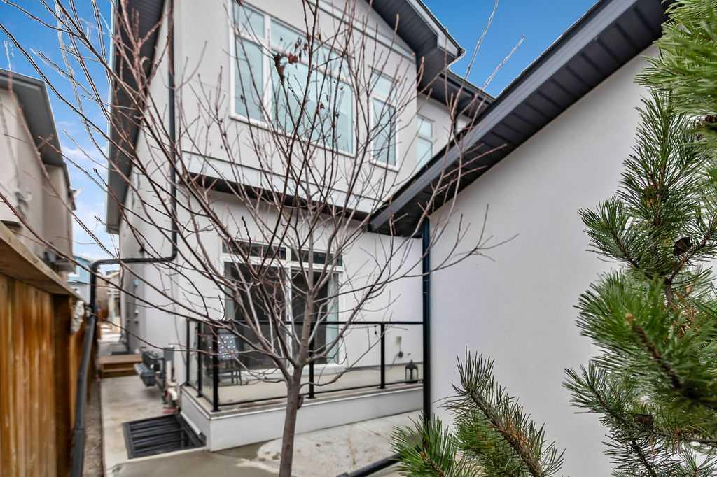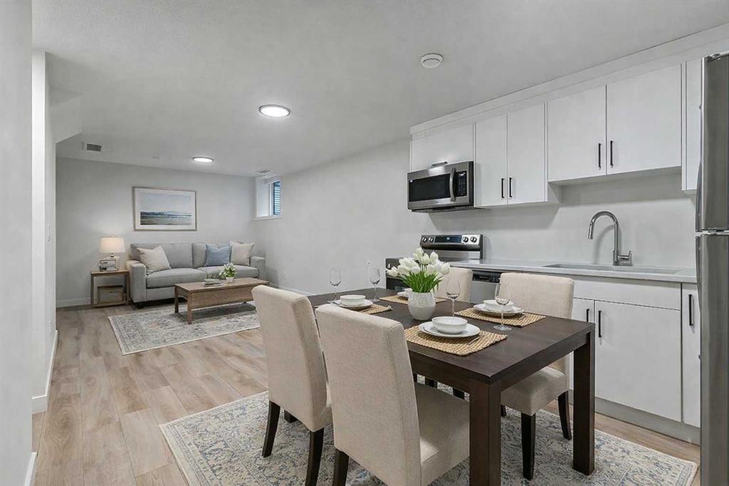 Open House Sat. March 21, 11:00am-1:00pm. Welcome to this beautifully designed back unit in a stylish and well maintained fourplex, perfectly positioned in one of Calgary’s most vibrant and rejuvenated inner-city communities. Just minutes to downtown, steps to the river pathways, and surrounded by trendy shops, cafés, and amenities, this location is ideal for the urban professional seeking both lifestyle and convenience. As you arrive, you will immediately notice the incredible curb appeal and attractive landscaping that sets the tone for the entire property. Tucked away at the back, this unit offers exceptional privacy along with both a side entrance and a rear entrance shared with the illegal suite. Enjoy sunny afternoons on your spacious southwest facing deck, complete with a charming greenspace that is perfect for your pup. The single garage is conveniently located just outside your back door, making coming and going effortless. Step inside and fall in love with the bright, open concept main floor, designed with both style and function in mind. The stunning kitchen features cabinets that extend all the way to the ceiling, quartz countertops, an island, and an impressive pantry. This space flows seamlessly into the living and dining areas, creating the perfect environment for entertaining or relaxing at home. Large windows fill the space with natural light, enhancing the warm and inviting atmosphere. A discreetly placed two piece bathroom and a practical mudroom complete this level. Upstairs, you will find a thoughtfully designed layout featuring two spacious bedrooms, each with its own ensuite. This setup is ideal for roommates, guests, or a small family. The primary bedroom offers an ensuite with a separate shower and tub, double sinks, and a massive walk-in closet. The second bedroom is equally impressive, complete with its own four piece bathroom. The fully finished basement adds incredible versatility, offering a complete illegal suite with a full kitchen, living room, dining area, large bedroom, full bathroom, and its own laundry. Used for extended family, guests, or a tenant, this space provides excellent flexibility and value. Whether you are just starting out, downsizing, or looking for a smart investment close to the core, this multifunctional home offers the perfect blend of location, style, and opportunity. (Basement photos are virtually staged.)