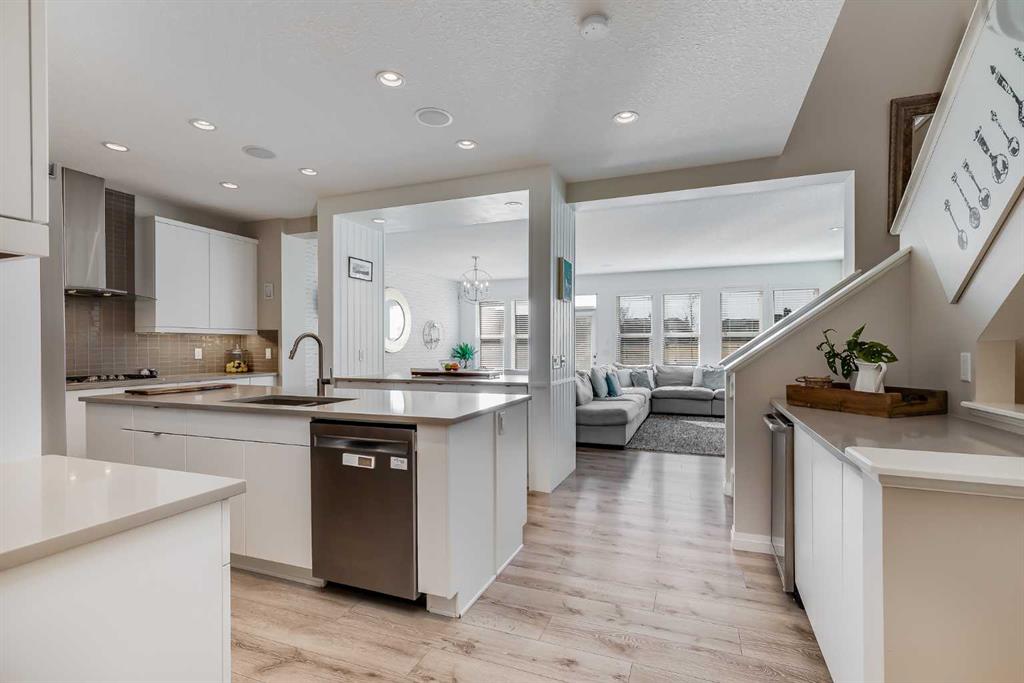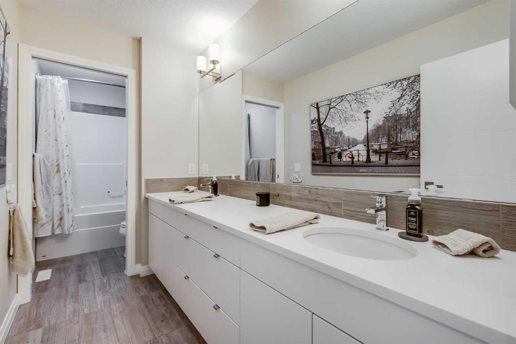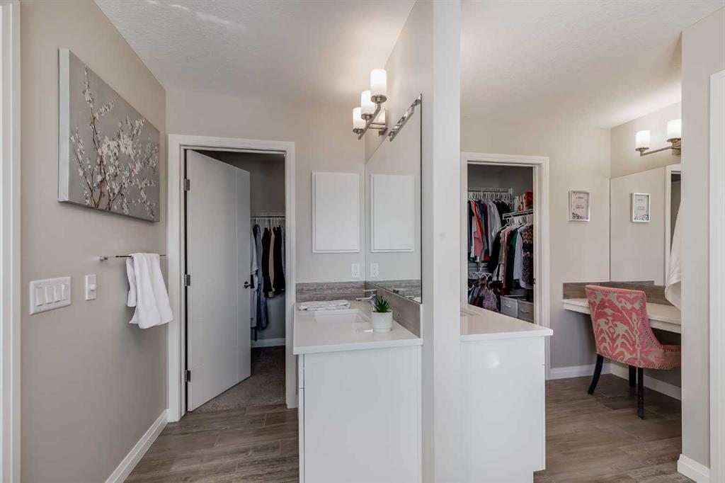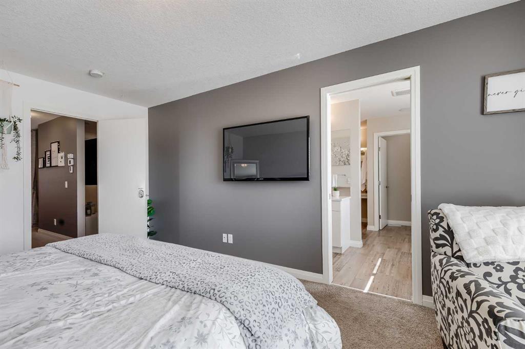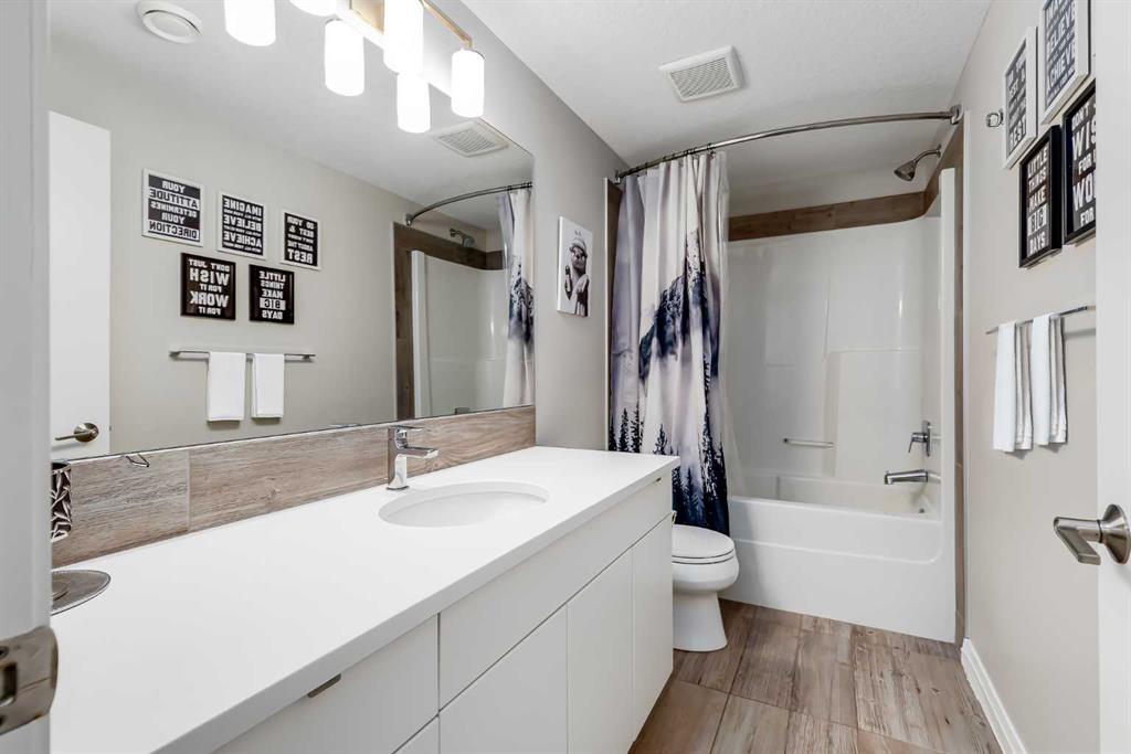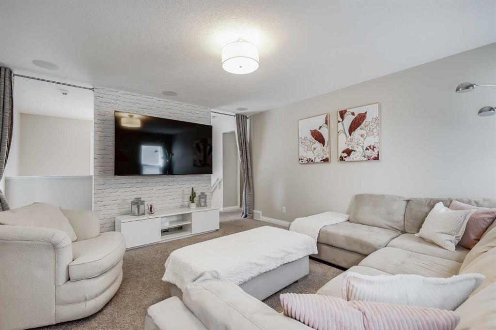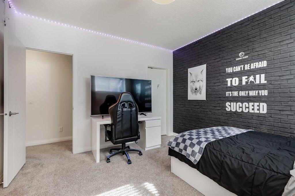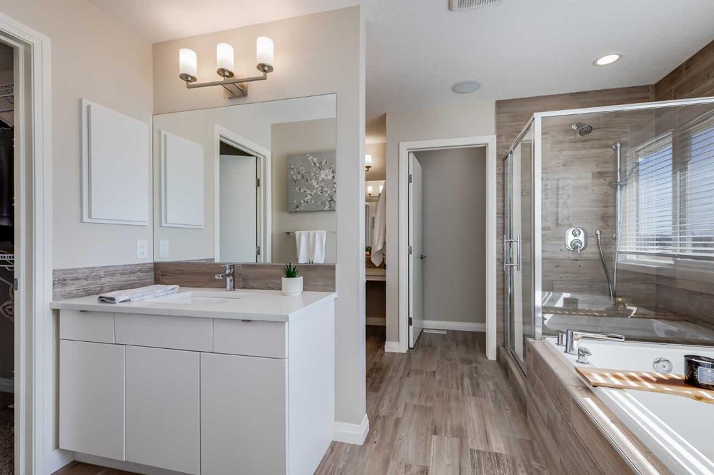 Located in the sought-after lake community of Auburn Bay, this Jayman-built two-storey home offers over 3,600 square feet of developed living space, with five bedrooms and 3.5 bathrooms. Backing directly onto greenspace and showcasing mountain views from the primary bedroom, the property combines thoughtful design with over $80,000 in upgrades and standout curb appeal. The main floor welcomes you with a spacious entryway and 9-foot ceilings, while large windows bring in an abundance of natural light. Durable wide plank hardwood flooring runs throughout, complementing the open-concept layout that connects the kitchen, dining, and living areas. The kitchen is designed with a focus on both style and function, featuring quartz countertops, stainless steel appliances including a gas cooktop (wired for electric cooktop as well) and built-in wall oven, sleek white cabinetry, and a refined backsplash. Two oversized islands offer generous space for preparation and casual seating, while abundant cabinetry and a walk-in pantry provide excellent storage. A built-in beverage area with a bar fridge adds an extra layer of convenience. The dining area comfortably accommodates gatherings and offers access to the back deck, while the living room is anchored by an electric fireplace with a stone surround. A two-piece powder room completes this level. Upstairs, a central bonus room separates the primary retreat from the additional bedrooms. The primary suite overlooks greenspace with views of the Rocky Mountains and includes a luxurious five-piece ensuite with a soaker tub, standalone shower, dual vanities with individual sinks, a makeup station, and two walk-in closets. Two additional bedrooms are generously sized and share a five-piece bathroom with dual sinks and a separate area for the tub, shower, and toilet. A walk-in linen closet and a dedicated laundry room add to the practicality of this level. The fully finished basement expands the living space with a recreation and media area, two more bedrooms, each with their own walk-in closet, and a four-piece bathroom. There is also plenty of storage throughout. Outside, the south-facing backyard enjoys the sun all day long and features a deck and a grass area suited for a fire pit, play space, or entertaining. There is direct access to walking and biking pathways and the surrounding greenspace. Living in Auburn Bay means exclusive access to the lake and community amenities including a beach, tennis courts, and year-round activities. The home backs onto a field connecting Prince of Peace and Lakeshore Schools, is a short walk to Auburn Bay School, and minutes from JCS High School, Seton YMCA & library, South Health Campus, shopping, dining, major roadways, parks, golf courses, and an off-leash dog park. Check out the floor plans and 3D Tour!