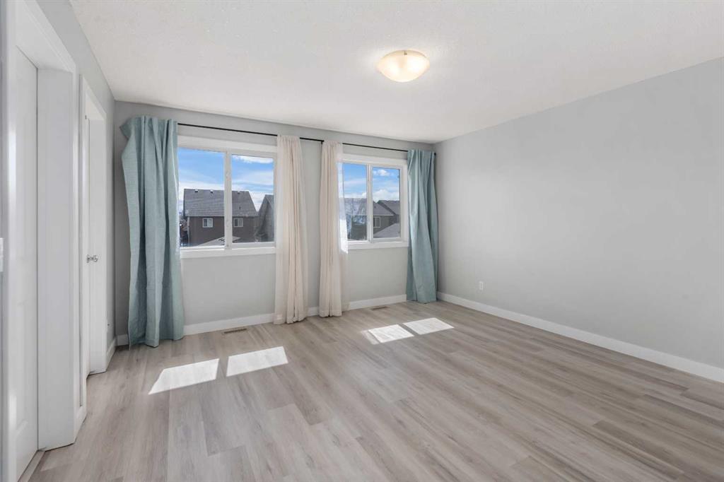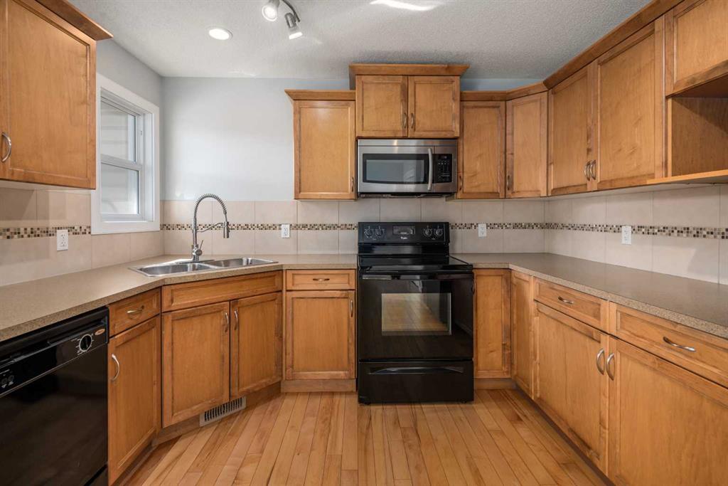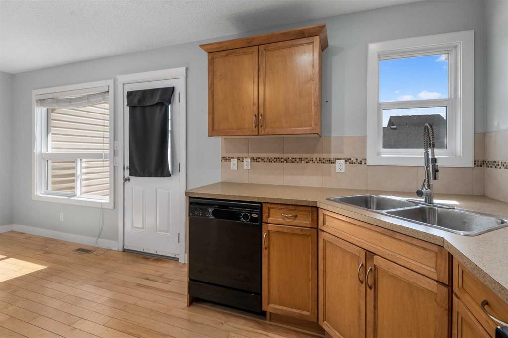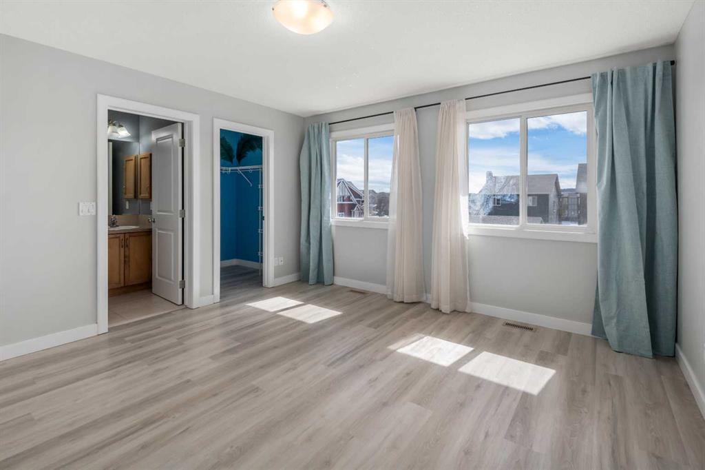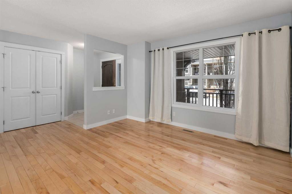 EXCEL 4 PLEX HOME with Lots of Natural Light, NO CONDO FEES, DOUBLE GARAGE and Upgrades Include: 2023 Vinyl Planks upstairs & upper floor, Wall painting 2023 and more painting 2026, washer/dryer 2023. Home sweet home in Heartland of Cochrane, where sweeping mountain views meet modern living. Stylized design begins right at the curb, with tidy landscaping and eye-catching architectural details. A LARGE COVERED FRONT PORCH connects your lifestyle to the community, inviting you to wave to passing neighbours while you relax with a favourite beverage. ***MAIN FLOOR*** Inside, the open entryway offers generous closets as you step into the living room, where big windows that capture tons of natural light and HARDWOOD FLOORING strike the perfect balance of bright and inviting. Sunshine from the south fills the kitchen, where plentiful cabinetry in lovely warm tones creates the perfect setting for your favourite meals as you cook for family and friends. The dining area has a ceiling fan and a window that opens, allowing a delightful breeze to flow through on warm days, or step out onto the deck to soak up the sun. A large closet here is ideal for outerwear or PANTRY items. A well thought out floorplan also includes a half bathroom on this level. ***UPPER FLOOR*** Entirely repainted over the past few years, this home also features upgraded VINYL PLANK FLOORING on the stairs and upper storey. A credenza adds functional space in the hall. The spacious primary bedroom is complete with a WALK-IN CLOSET AND A WELL-APPOINTED ENSUITE. Two more bedrooms and the main bathroom are also on the top floor, forming a wonderfully family-friendly layout. ***BASEMENT*** Unfinished and ready for your ideas, the basement is insulated and was thoughtfully planned for possible development, with a large window, BATHROOM ROUGH-IN, and a laundry area with new machines. The utility zone is in a corner, giving you full access to the rest of the space. Furnace maintenance is up to date, and the home includes a HEAT RECOVERY VENTILATOR for added efficiency. ***EXTERIOR*** Outside, the private yard is nicely divided between the deck, lawn, and gravelled walkways. Gardens beds receive the perfect amount of sun and shade for growing flowers and food. The detached DOUBLE garage is drywalled and curb walled, and the PAVED ALLEY is wide enough to pull a trailer through to load up for camping weekends. ***THE AREA*** Set on the edge of town, this area feels like a courtyard community has a bit of everything. Pathways and parks are nearby, and the Bow River is in walking distance. Shops and services are available only a few blocks away, and Cochrane offers every amenity you could need, yet still has that small town feel. At the end of the block, uninterrupted MOUNTAIN VIEWS are a stunning backdrop for all your outdoor activities. PROXIMITY TO THE HIGHWAY puts Calgary within a 20-minute drive, and makes your escape into nature easy, with camping, hiking, and alpine sports all available in just a short trip.