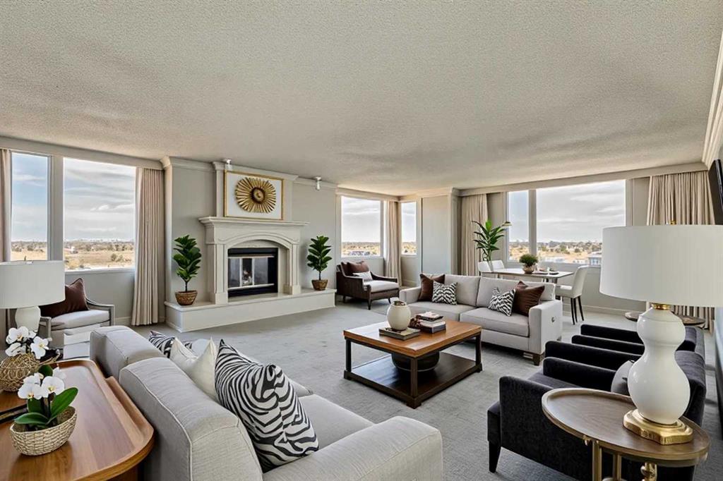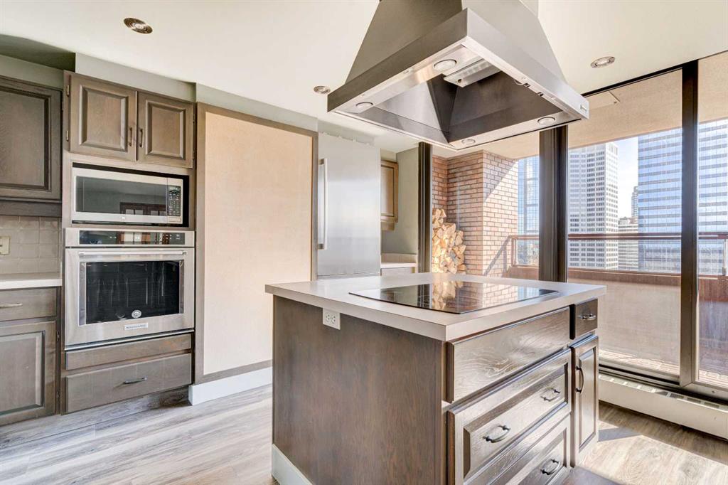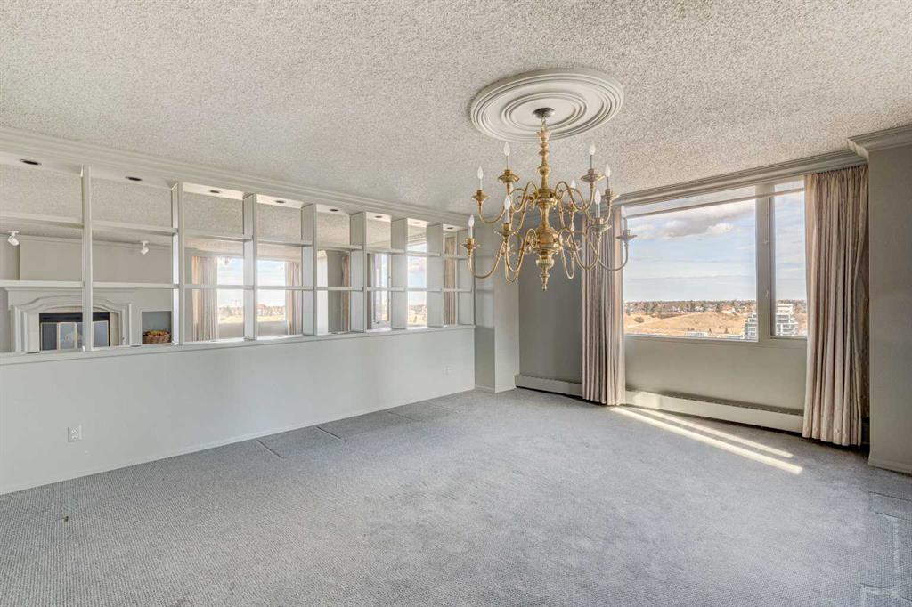 Welcome to 500 Eau Claire Estates. Opportunities like this one are genuinely rare. Occupying the entire 20th floor of the coveted "A" Tower, this remarkable 3 bedroom, 2.5 bath residence offers 3,554 square feet of single-floor living with unobstructed 360-degree views of the Bow River, the Rocky Mountains, and the Calgary skyline. It is the kind of home that stops you in your tracks the moment you walk in. A private elevator opens directly into your own dedicated foyer with no shared hallways and no neighbours at your door. Just a gracious, unhurried entrance with ample storage and an immediate sense that this is somewhere special. As you wander down the hall it opens to the main living room, anchored by a wood-burning fireplace and the stunning Bow River views that provide a gorgeous backdrop throughout the seasons whether you're entertaining or simply unwinding at the end of the day. The formal dining room flows naturally off the living space, while the kitchen connects to a sunny south-facing patio overlooking the downtown skyline, a casual dining area, and a flexible den or sitting room that adapts easily to how you actually live. The primary suite is expansive and feels like its own world, also overlooking the river and west, a second wood-burning fireplace, generous walk-in closet, a flex den area, and a well-appointed 5-piece ensuite. The two additional bedrooms are both genuinely spacious, one with west-facing mountain views and a walk-in closet, the other looking south-west over downtown. Eau Claire Estates has undergone a significant stunning renovation to its common areas, including a refreshed concierge and main entrance, new elevators, and an updated pool and fitness centre as well as residents lounge opening June 2026. This home also comes complete with two titled parking stalls, private storage and all utilities included in the fees. With a wonderful 24-hour concierge service, on-site management, landscaped courtyards and a beautiful location, homes like this are not simply found, they are waited for. With a floorplan that has long been among the most coveted in the building, dual wood-burning fireplaces, panoramic views from every room, and a building experiencing a true renaissance, this is an opportunity to claim one of Calgary's most exceptional addresses, steps from the Bow River pathways, the downtown core, and the brand new Eau Claire Athletic Club. Welcome Home.