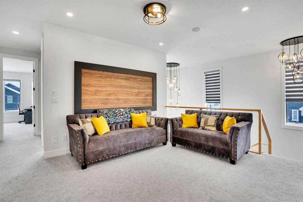 Welcome to this stunning home located in the highly sought-after community of Kinniburgh South in Chestermere. Situated on a spacious corner lot of approximately 6,500 sq ft, this beautifully designed property offers around 2,800 sq ft of living space, perfect for large or growing families.