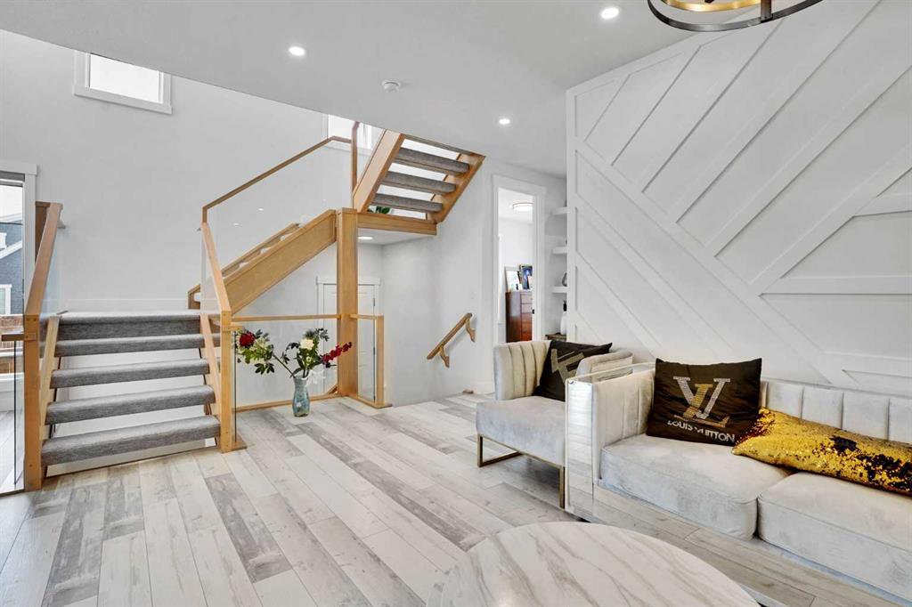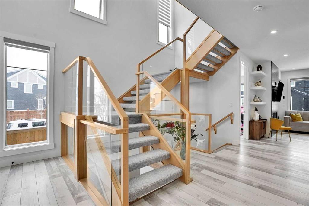 Featuring 7 bedrooms and 5 full bathrooms, this home provides exceptional space and functionality. The main floor boasts a bright and open-concept layout with a modern kitchen equipped with quartz countertops, stainless steel appliances, and ample cabinetry, ideal for both everyday living and entertaining. Elegant open-riser stairs add a contemporary touch and enhance the overall feel of the home.