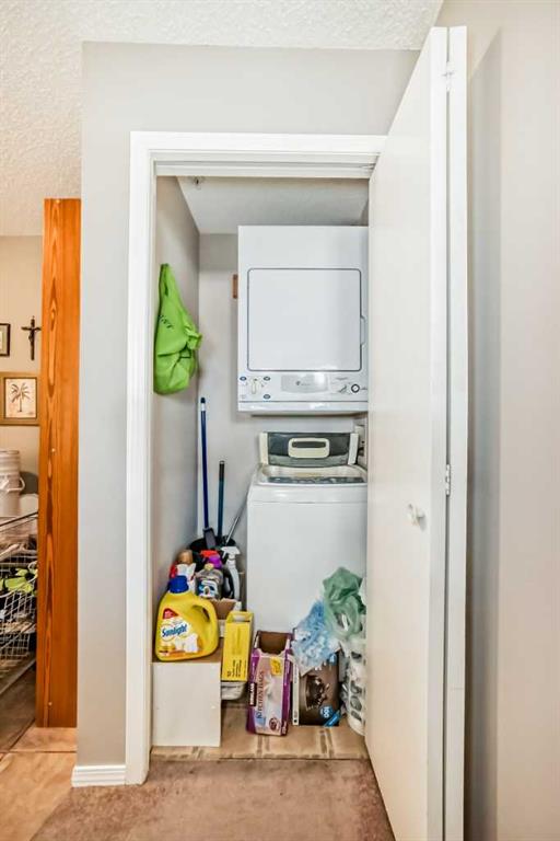 The home offers two generous bedrooms and two full bathrooms, including a primary suite with a walkthrough closet leading to a private 4-piece ensuite. Additional conveniences include in-unit laundry and a titled underground parking stall for year-round comfort.