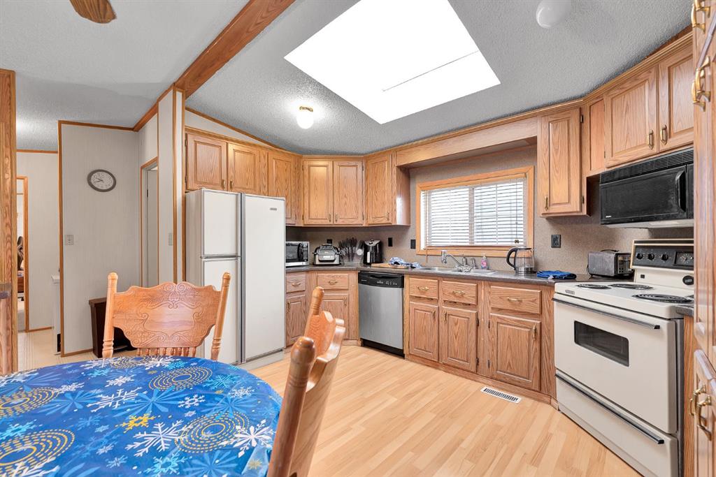 A fantastic opportunity for investors and first-time home buyers or those looking to enter the market to own a detached home under $320,000. Designed for year-round comfort and peace of mind, this home is equipped with air-conditioning and winterized heat tape for cold-weather protection. This well-designed 1,200 sq. ft. bungalow-style modular home offers 3 bedrooms, 2 full bathrooms, and a bright open-concept layout, situated on fully titled and owned land. Vaulted ceilings and large windows fill the living space with natural light, while the oak kitchen features a skylight, generous pantry, and built-in cabinetry—perfect for everyday living and entertaining.