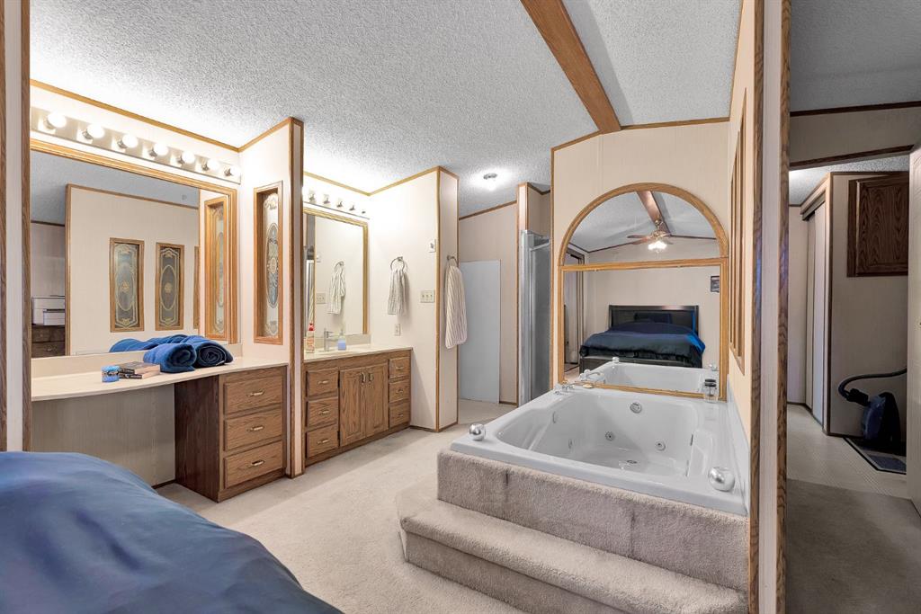 The primary bedroom is a relaxing retreat, featuring a spa-inspired open ensuite design with a two-person jetted soaker tub, separate shower, private toilet area, and dedicated vanity space. Two additional bedrooms are located at the opposite site of the home along with full main bathroom that provides private and comfortable space for family or guests.