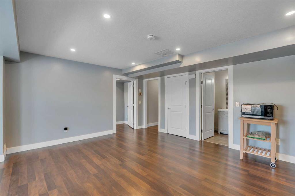 Beautiful 2-storey walkout backing onto the pond with a legal basement suite! This home is immaculate and thoughtfully designed to take full advantage of the view, with expansive windows that fill the space with natural light. The main floor features a spacious foyer, a convenient flex room/office, and an open-concept layout with a large living room complete with a gas fireplace and built-ins. The kitchen offers stainless steel appliances, a newer dishwasher, gas stove, granite countertops, and a breakfast bar. The sizeable dining area accommodates a full family table and overlooks the pond. You’ll also appreciate the walkthrough pantry, along with a stylish mudroom and laundry area just off the kitchen. Upstairs, the primary bedroom offers a comfortable retreat with a spacious ensuite featuring a separate shower and jetted soaker tub, walk-in closet and a seating nook. The additional bedrooms are both generously sized and share the main bathroom. The walkout basement includes a legal suite with two bedrooms, a full kitchen, living room, separate laundry and plenty of natural light. Outdoor living is exceptional in this home with both covered and uncovered patio spaces overlooking the pond. Enjoy year-round access to walking paths, plus a playground just across the water. The home is within walking distance to schools and offers quick access to Deerfoot and Stoney Trail. Other updates and features include air conditioning, new light fixtures throughout, new siding and roof (2022), updated hot water tank and 2 furnaces. Move in and enjoy everything this home and location has to offer!