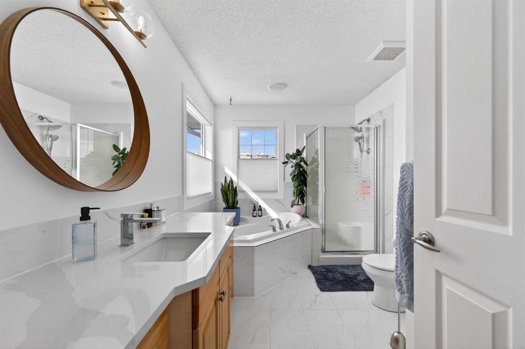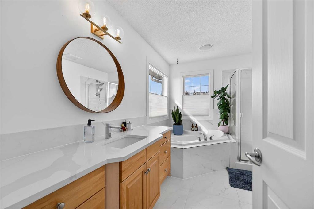 This move-in-ready, four-bedroom home has been thoughtfully updated with a growing family in mind. The main floor features an open-concept renovation that creates a bright and functional great room, anchored by a large kitchen with a massive central island, breakfast bar, new microwave, new dishwasher and a convenient pantry for extra storage. Durable luxury vinyl plank flooring runs throughout the main level, offering a high-end look that can easily handle the demands of a busy household. From the dining area, you have direct access to the updated rear deck, making it easy to move family meals or entertaining outdoors. Upstairs, the home offers three spacious bedrooms and a bright bonus room that serves as a secondary lounge for movie nights or quiet evenings. The primary bedroom is a comfortable retreat, complete with a private, updated four-piece ensuite. For even more flexibility, the fully finished walk-out basement adds a fourth bedroom and a recreation area that leads directly out to a covered patio. This setup provides a shaded spot to relax while keeping an eye on the kids in the large backyard. Beyond the cosmetic finishes, the home’s mechanical and structural integrity have been well-maintained, with a newer roof, furnace, and deck, along with updated light fixtures and convenient electric blinds. The location is just as impressive as the house itself, situated directly across the street from a beautiful park with extensive walking and biking paths and just minutes from Westhills Towne Centre.
