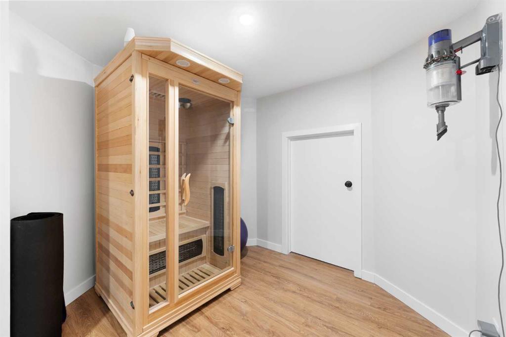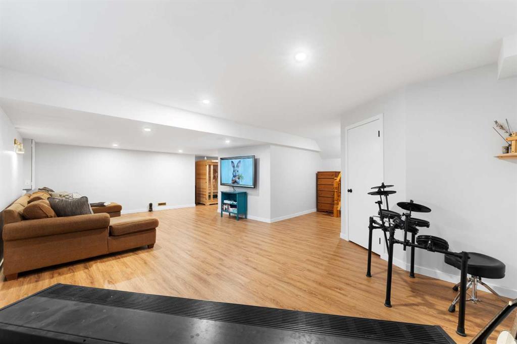 Outside, the fully fenced backyard is designed for both function and enjoyment, featuring a deck with a covered pergola, RV parking, and an oversized garage with in-floor heating, ideal for a workshop or year-round use.