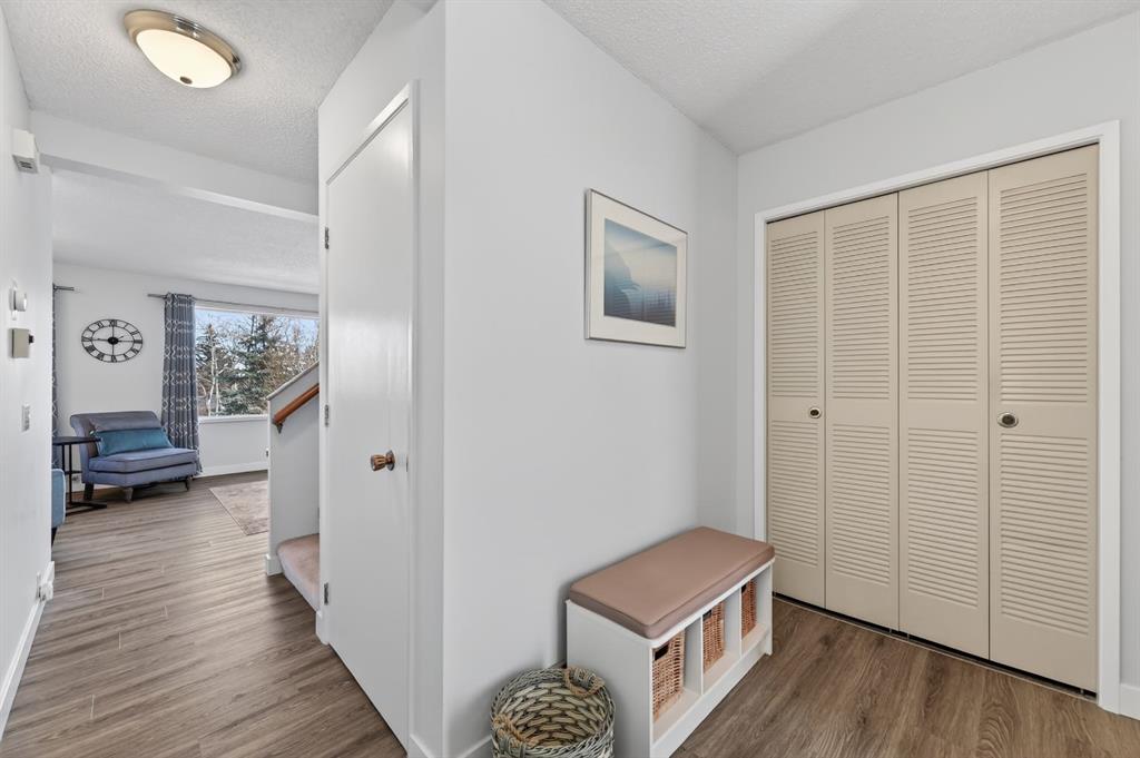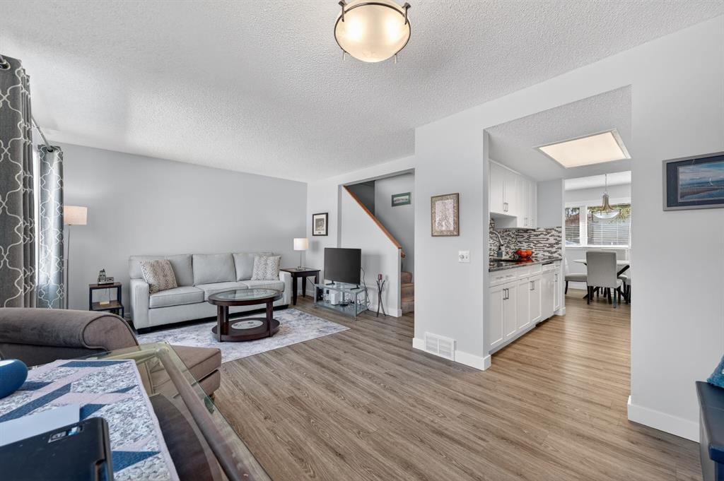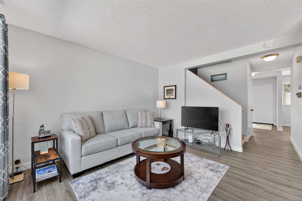 Beautifully maintained 3-bedroom, 1.5-bathroom townhome located in the desirable community of Palliser. This bright and functional home features newer front windows, luxury vinyl plank flooring, and updated paint throughout. The main floor offers a spacious living and dining area, along with an updated kitchen complete with granite countertops, tile backsplash, updated cabinetry, sink, and appliances, including fridge (2024) and dishwasher (2019). A renovated 2-piece powder room completes the main level.