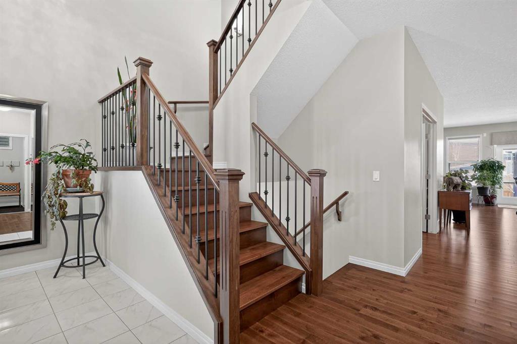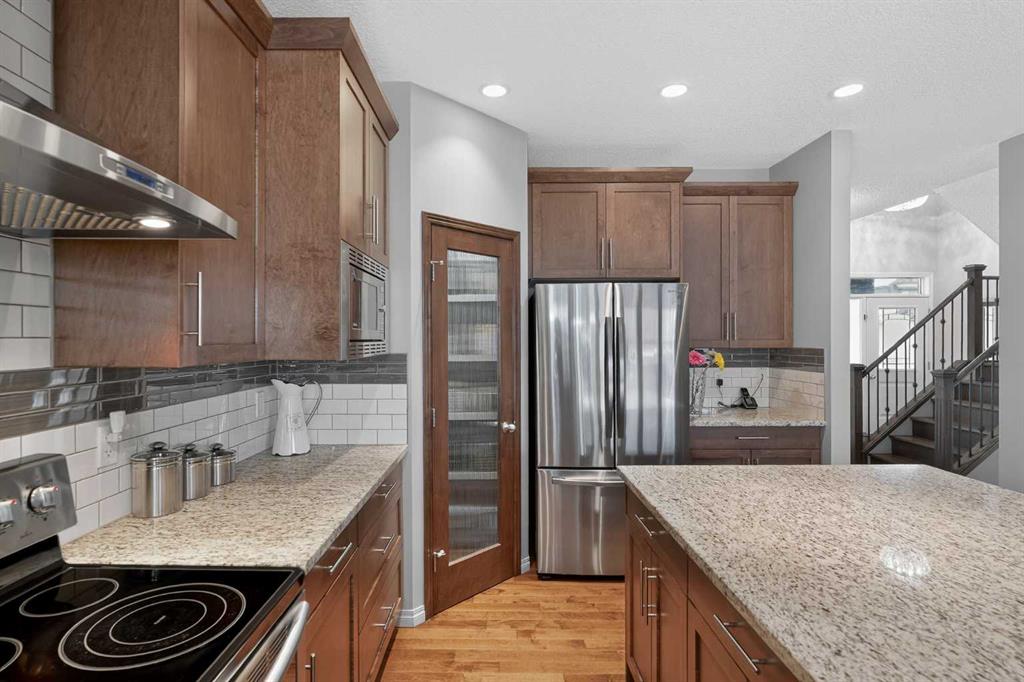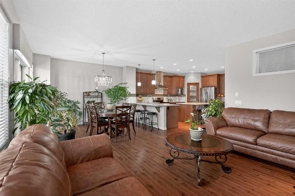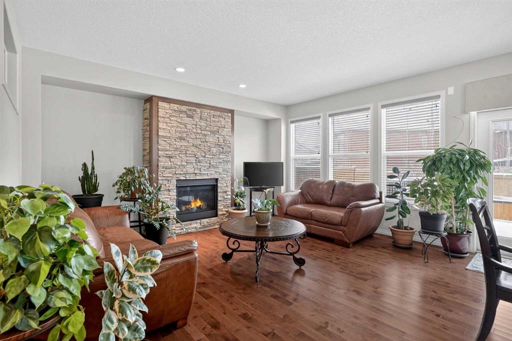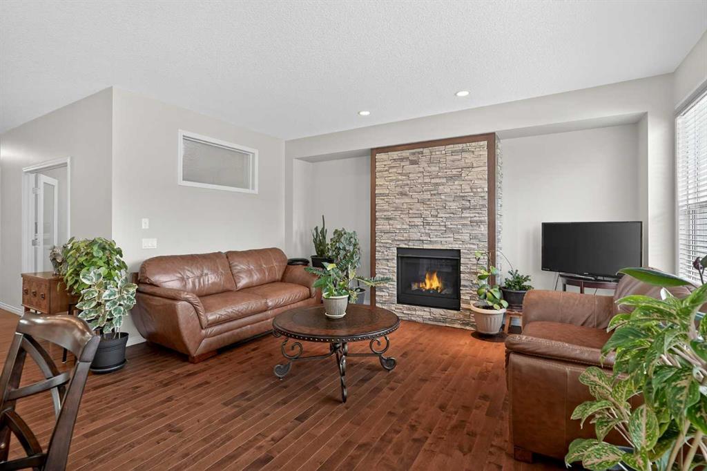 Step into this stunning 2,300+ sq. ft. family masterpiece, perfectly situated in the heart of the award-winning community of Legacy. Designed with both sophistication and daily functionality in mind, this home offers a seamless blend of open-concept living and private retreats. The main level welcomes you with rich hardwood flooring and a dedicated den, perfect for a quiet home office or study. The heart of the home is the expansive living room, featuring a cozy fireplace anchored by a floor-to-ceiling stone detail. Chef’s will love the gourmet kitchen! Substantial granite-topped island for prep and casual dining. Premium built-in microwave and a walk-in pantry. A bright, oversized eating area with elegant French doors that lead directly to your spacious backyard deck. The journey continues upstairs to a massive bonus room, ideal for family movie nights. The layout includes: A luxurious Primary Suite with a spa-inspired 5-piece ensuite. Two additional generous bedrooms and a full 4-piece bath. The ultimate convenience of an upper-floor laundry room. The lower level is professionally finished, offering a large family room for entertaining, a fourth bedroom, and another full 4-piece bathroom—perfect for guests or teenagers. As an added bonus, Central Air-Conditioning to keep it comfortable in the summer months! Outside, the large backyard provides plenty of room for summer BBQs and play. The Location Advantage - You are steps away from the brand-new school and surrounded by Legacy’s famous parks and pathways. With the Township Shopping Centre just minutes away, you have world-class shops and restaurants right at your doorstep. This is the one you’ve been waiting for—don’t miss out!