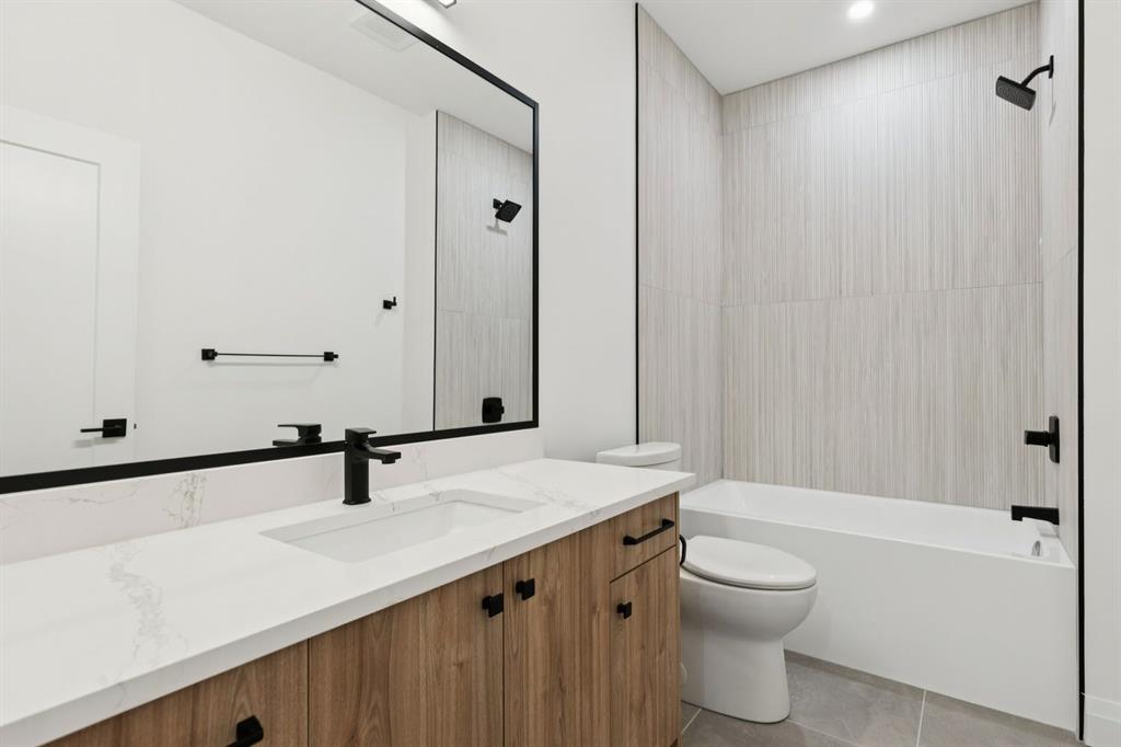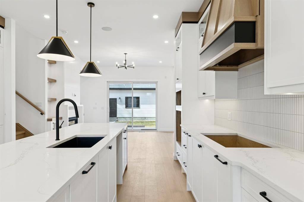 Situated just steps from the Bow River in the highly sought after community of Parkdale, this sophisticated modern residence offers over 3,600 sq ft of beautifully curated living space, blending elevated design with exceptional functionality. The bright, open concept main floor welcomes you with a spacious entry and a stunning front dining area, highlighted by an illuminated feature wall that adds warmth and architectural interest. A glass enclosed office provides a perfect work-from-home setting, while the heart of the home, an exquisite designer kitchen, impresses with an expansive 10’ quartz waterfall island, built-in wall oven and microwave, gas cooktop, and sleek cabinetry. Striking glass panelled black fronts anchor the cooking space, complemented by crisp white shaker cabinetry for a refined modern aesthetic. A thoughtfully designed pantry with bar area and beverage fridge enhances both form and function. At the rear, the airy living room with a contemporary gas fireplace opens effortlessly to the west facing backyard and low maintenance deck through sliding glass doors. The second floor offers three generous bedrooms, each with its own walk-in closet, a full bathroom, and a well appointed laundry room with sink. The primary sanctuary features floor-to-ceiling windows, a striking feature wall, and a custom walk-in closet. The luxurious 6pc ensuite boasts heated floors, a steam shower, and a deep soaker tub for a luxurious escape. The third floor loft is exceptional offering incredible versatility and elevated living. Enjoy a built-in desk area, convenient coffee bar, and a front balcony with downtown views. This level also hosts a second primary suite, complete with a private rear balcony, walk-in closet, and a lavish 6pc ensuite with heated floors, a deep soaker tub, and an oversized glass shower. The fully developed basement features a separate entrance leading to a legal suite. This thoughtfully designed space includes two spacious bedrooms, a 4pc bathroom, its own laundry, and a stylish kitchen with warm wood cabinetry, eat-up island, and full appliance package. The inviting living room is anchored by a modern media wall, while access to the utility room reveals a tankless hot water system. Outside, the landscaped yard offers ample green space for kids and pets, and leads to a double detached garage. Additional upgrades include rough-ins for security, AC, and central vacuum, along with exposed aggregate steps and walkways. Ideally located, you’re just steps to Foothills Medical Centre, and only minutes from Alberta Children's Hospital and the vibrant University District, offering an incredible mix of dining, shopping, and everyday amenities. Surrounded by parks, pathways, cafés, and the natural beauty of the Bow River, this exceptional home delivers the perfect balance of luxury, comfort, and convenience.