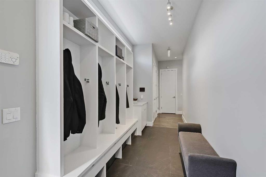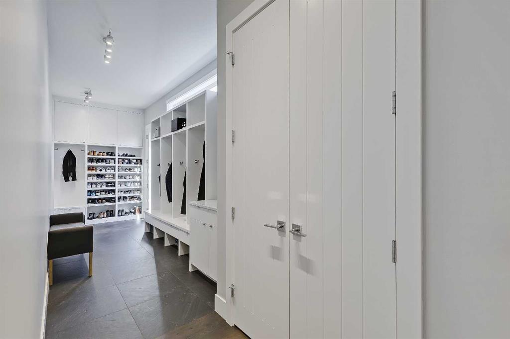 Not only is there a glass-walled main floor office, but a quiet den with built-in shelving, giving you a dedicated space to work or play without taking up the whole house. The mudroom is a total game-changer with five built-in lockers, offering plenty of storage for coats, bags, and everything else, plus it leads right into the oversized garage for easy access.