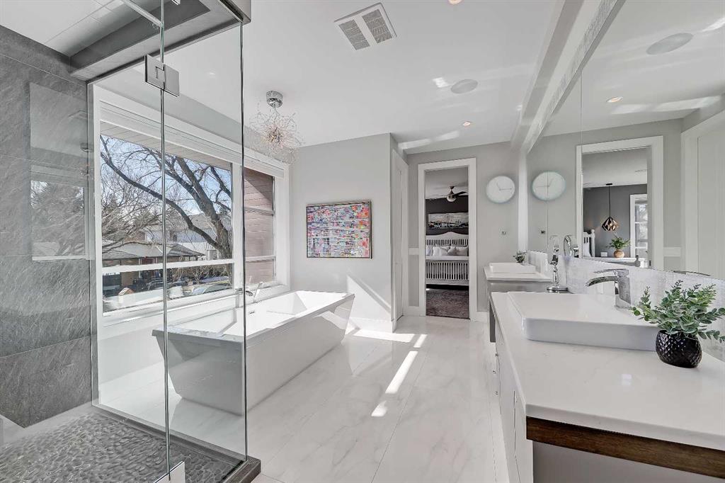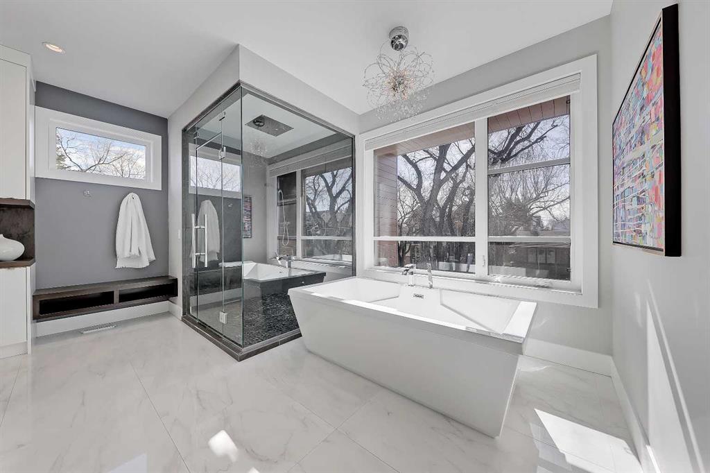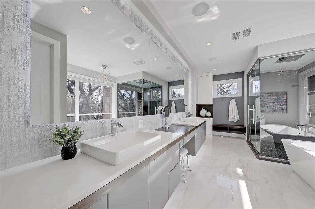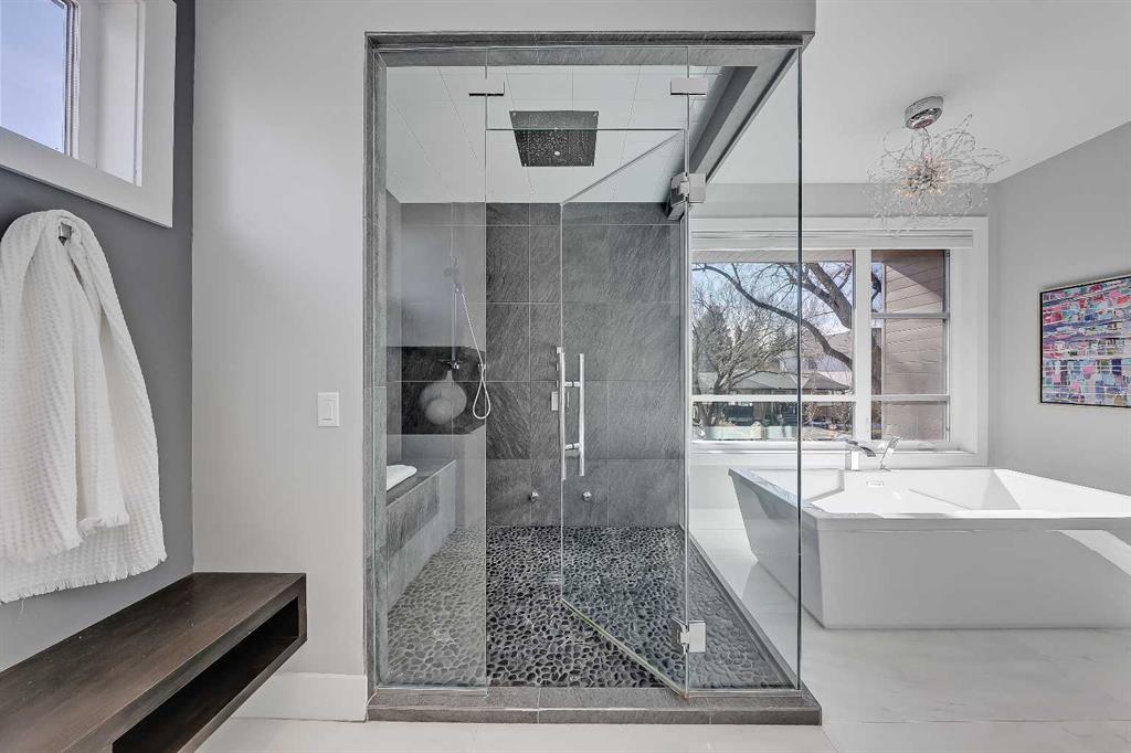 Upstairs, the primary suite is an absolute dream. The walk-in closet is spacious, and the ensuite feels like a spa, with dual showerheads (including a rain shower and spray nozzle), a steam shower, and in-floor heating. It’s pure luxury. The other THREE beds are generously sized, with one enjoying a private 3-pc ensuite and the other two sharing a lovely 5-pc Jack-and-Jill ensuite with a skylight.