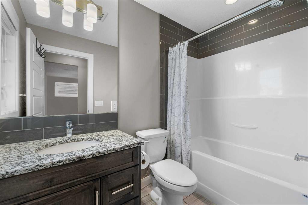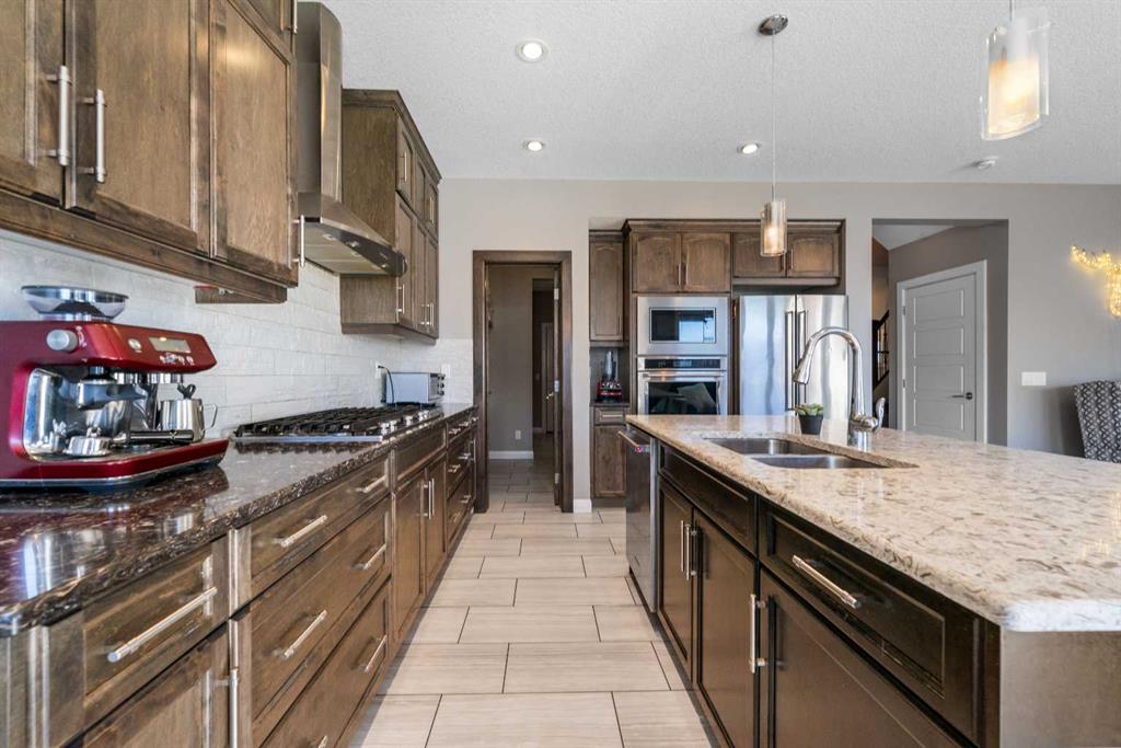 Gorgeous Family Home | Top of the Line Finishes | 2,097 SqFt + 819 SqFt Finished Basement | 4 Bedrooms | 3.5 Bathrooms | Expansive Living Space | Chef's Kitchen | Full Height Cabinets | Built-in Stainless Steel Appliances | Gas Cooktop | Granite Countertops | Kitchen Island | Barstool Seating Space | Walk-through Pantry | Open Floor Plan | Recessed Lighting | Large Windows | Ample Natural Light | Spacious Upper Level Bedrooms | Upper Level Family Room & Laundry | Finished Basement | Entertainer's Dream | Basement Bedroom & 3pc Bath | Great Storage | Manicured Backyard | Massive Lawn Space | Fully Fenced | Concrete Patio | Front Attached Double Garage. Welcome to your stunning 2-storey family home boasting 2,916SqFt throughout the main, upper and basement levels with an expansive open floor plan and top of the line finishes. The front door opens to a foyer with views of the beautiful staircase to the upper level with an open ceiling. The main level has a great living space with an open concept kitchen, dining and living room. The chef inspired kitchen is complete with full height cabinets, built-in stainless steel appliances, a gas cooktop and a large kitchen island with a barstool seating area. The kitchen pantry is a walk-through that connects to the mud room making it easy to do a grocery delivery! The dining room has a large window that overlooks the massive backyard and has a door to the rear patio making indoor/outdoor dining easy. The living room is centred with a fireplace adding both style and comfort to this space. The main level is complete with a 2pc bath. Upstairs holds 3 grandiose bedrooms and a family room with carpet flooring and tile in the wet rooms. The primary bedroom is paired with a deep walk-in closet and spa-like 5pc ensuite. The ensuite bath has a deep soaking tub, walk-in shower, His & Hers vanities and a private washing closet. Bedrooms 2 & 3 upstairs are a mirrored image and share the main 4pc bath with a tub/shower combo. The family room is central to the upper level separating the primary from the additional bedrooms adding to your privacy. The laundry located upstairs is a great bonus as its near majority of the bedrooms. Downstairs, the finished basement is incredible for entertainment! With a rec room and a flex room, this space can easily be used for a home theatre, gym or games room! The basement bedroom is a great size and the basement has a 3pc bath with a walk-in shower. Outside is an incredible and vast backyard with space for both dining and entertainment. The concrete patio is ready for an outdoor dining set or lounge furniture! The fully fenced yard provides you with a private space to enjoy with your friends and family. The front attached double garage and driveway provide you with parking for 4 vehicles at any time! Hurry and book a showing at this gorgeous family home today!