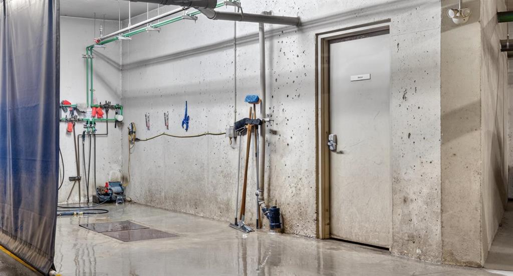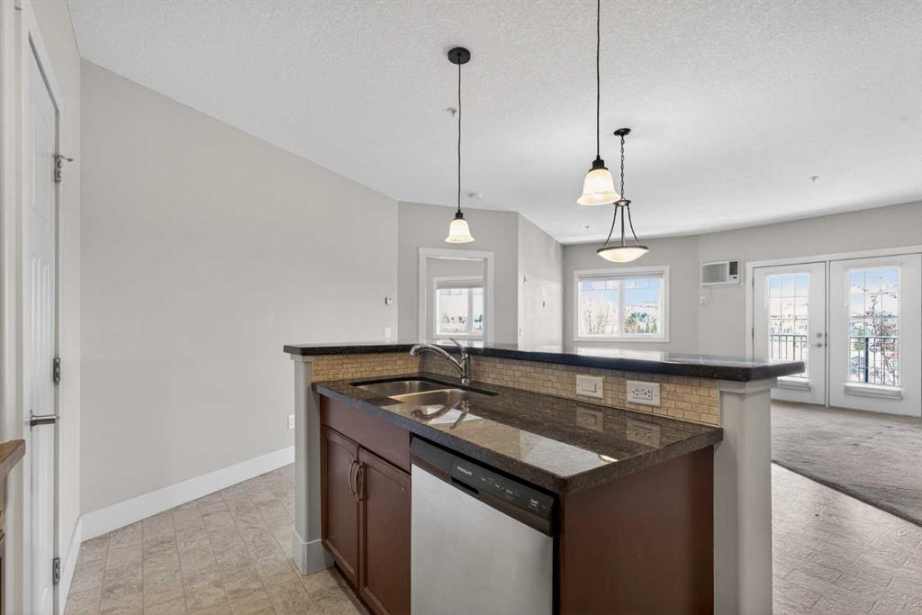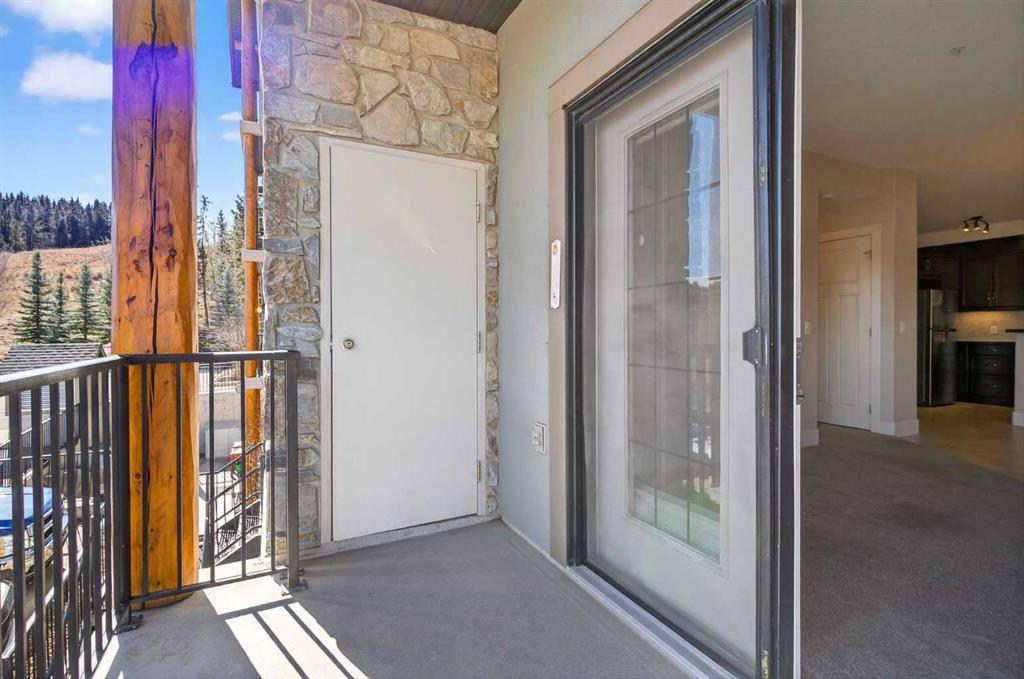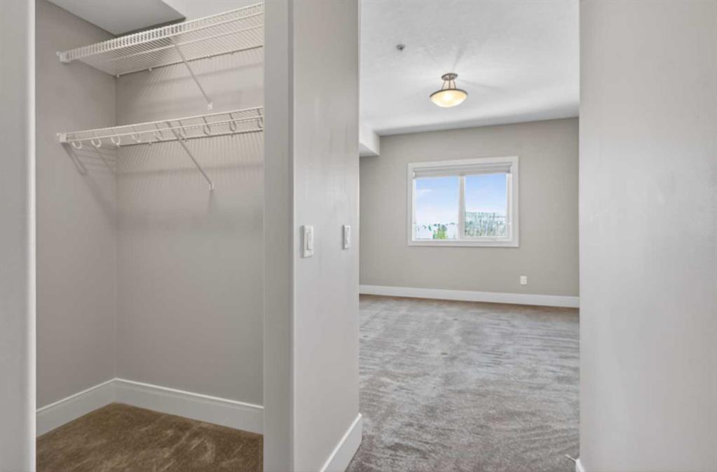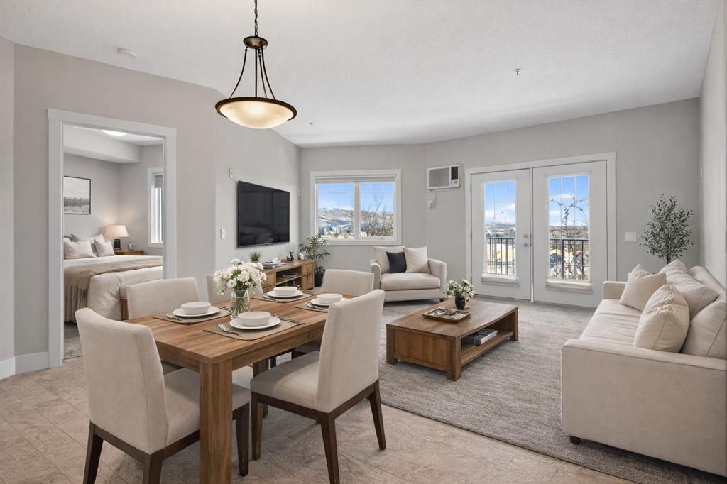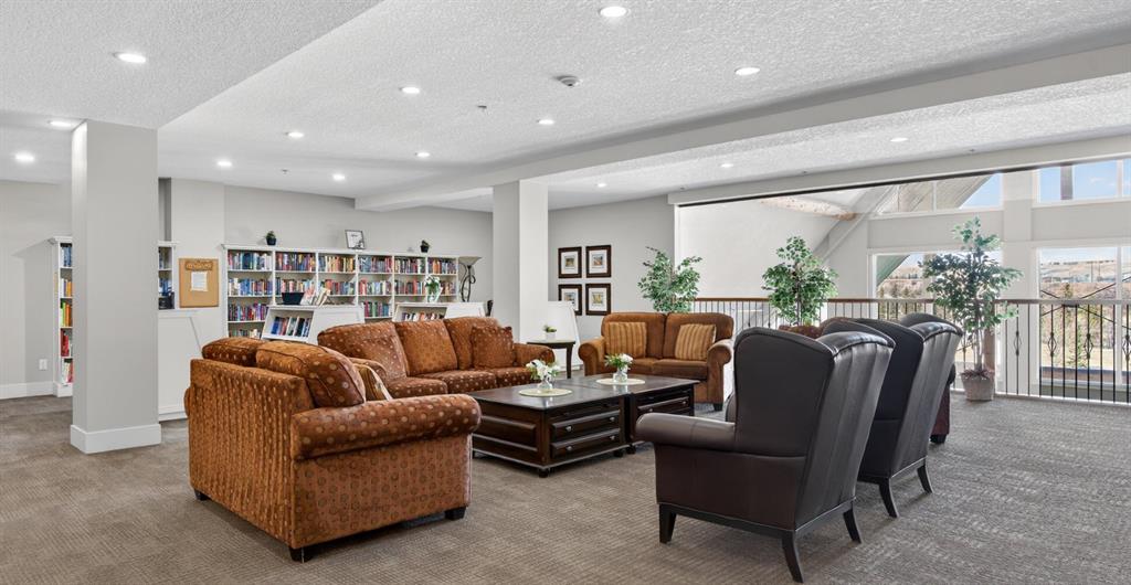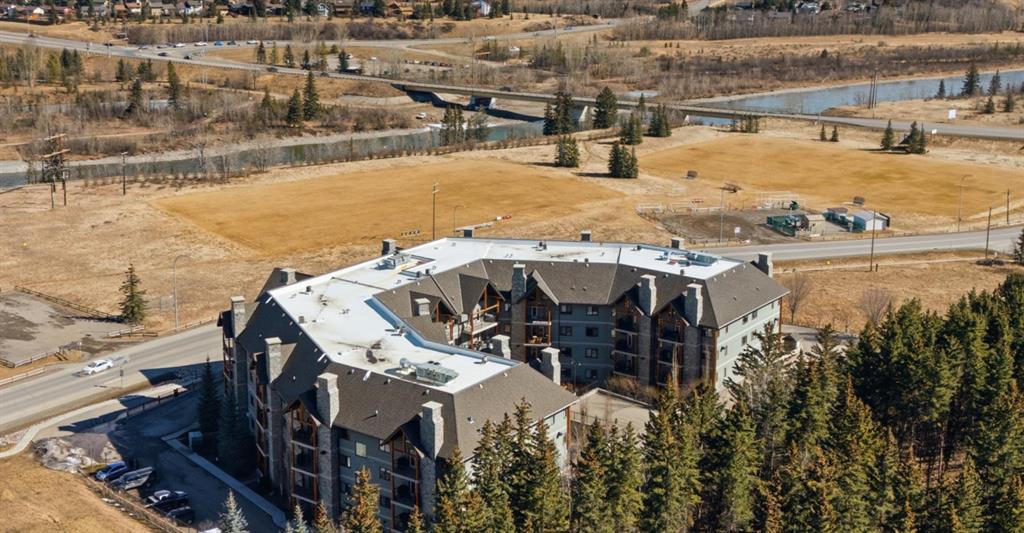 Here is your opportunity to reside in Lofts on the Bow, Cochrane’s gold standard for 55+ adult living. Proudly offered by the original owner, this is currently the only unit available in the building. Just across from the Bow River, this beautifully designed concrete building is inspired by alpine architecture, featuring a striking blend of stone masonry, timber accents, and expansive glass, along with in-floor heating throughout. Upon entering, you are greeted by open balconies and a grand maple staircase, creating an impressive sense of arrival as it opens to the amenities beyond. The building offers numerous thoughtfully designed common areas with chateau-esque furnishings throughout, providing inviting places to gather, connect, and relax. This 2nd-floor end unit features a unique single-level floor plan, exclusive within the building and offering a rare third window that brings in additional natural light. With 9' ceilings and an open design, the home feels bright and airy. The layout places the bedrooms and bathrooms on opposite sides of the unit, enhancing both privacy and flow, with generously sized bedrooms, including a primary bedroom with a walk-in closet. A dedicated laundry space with stacked washer and dryer adds everyday convenience. The kitchen is finished with stainless steel appliances, granite countertops, a breakfast bar, a deep pantry, maple cabinetry, and under-cabinet lighting, blending style and function. Additional features include multi-directional blinds and optional air conditioning already installed for year-round comfort. The unit is also pre-wired for a home theatre system. As an exterior end unit, you benefit from added privacy along with direct proximity to the stairwell, providing convenient access for groceries or quick entry into the building. Step outside onto your private balcony with northeast views of St. Peters Church, the Bow River, and the soccer fields, complete with a built-in storage locker. It’s not uncommon to spot deer grazing in the fields nearby, adding to the peaceful setting. The unit also includes a titled underground parking stall, ideally positioned as an end stall for added ease when parking and maneuvering. Enjoy an amenity-rich lifestyle, including a fully stocked community kitchen and large banquet hall, an open billiards room, a central south-facing courtyard backing onto a nature reserve with a stone fireplace, barbecue, pergolas, and benches, a flex/games room, fitness centre, a coffee bar and sitting area on the 2nd floor, a library on the 3rd floor with river views, a quiet loft lounge on the 4th floor, multiple guest suites, and a convenient car wash bay. Additional conveniences include short-term RV parking, perfect for unloading and settling in after long trips. This is not just another place to live, but a completely different way to live.