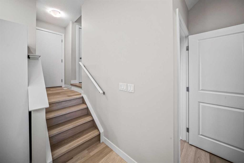 Upstairs, a bright and versatile nook for a home office or sitting area complements the wide hallways. The spacious primary bedroom comfortably accommodates a king-sized bed and features a private covered balcony with mountain views, a walk-in closet, and a 4 piece ensuite with dual quartz vanities. This level also includes a dedicated laundry room, a full 4-piece bathroom, and two additional bedrooms, each offering walk-in closets and large windows that fill the space with natural light.