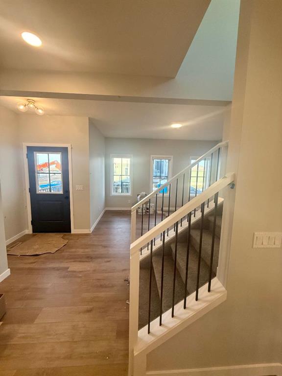 Welcome to The Castlecove, built by award-winning builder McKee Homes. A thoughtfully designed home that maximizes every square foot while delivering the bright, inviting atmosphere you'll love coming home to. From the moment you arrive, the generous front entry sets a welcoming tone—a home that balances style, comfort, and affordability without compromise. Step inside and you'll immediately appreciate the smart, functional layout that flows seamlessly from front to back. A versatile main-floor office/flex space is perfectly positioned for modern living—ideal for working from home, a kids' play zone, or a hobby and craft room. The main level opens into a bright, wide-open living area where large windows at both the front and rear let natural light pour in at every hour, creating a warm, calming environment you'll love to unwind in. At the heart of the home is a sleek galley-style kitchen designed for both everyday life and effortless entertaining. The large central island is perfect for gathering with friends, casual meals, or keeping conversation going while dinner is on the go. Finished with ceiling-height cabinetry, quartz countertops, a chimney hood fan, a built-in microwave, and an extra set of pot-and-pan drawers, this kitchen delivers standout style alongside the practical storage you actually need. A dedicated gas line for your BBQ at the rear of the home makes it easy to take your cooking outside as well. Just off the back entry, a dedicated mudroom keeps daily clutter organized and out of sight—making busy mornings smoother and family life more manageable. Upstairs, the thoughtful design continues. A conveniently located upper-floor laundry room keeps things tidy and out of the way. The primary suite is a true retreat, featuring a generous walk-in closet and a well-appointed ensuite complete with a standing shower, toilet and a sink. Out back, a rear deck provides the perfect spot to relax and entertain, while a concrete parking pad is already in place for future garage development—adding flexibility and long-term value as your needs evolve. Bright, functional, and thoughtfully upgraded, The Castlecove is a home that proves affordability and great design go hand in hand. Don't miss your opportunity to own this exceptional property. Book your private showing today.