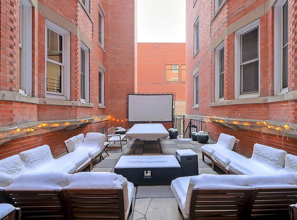 The bathroom preserves its vintage elegance with half-tiled walls and floors, an original claw-foot soaking tub, and updated faucet hardware and drain components. Constructed of concrete for exceptional quiet and durability, Anderson Estates offers weekday concierge service and a beautifully designed shared courtyard featuring seating areas, BBQ, fire table, and outdoor movie nights.