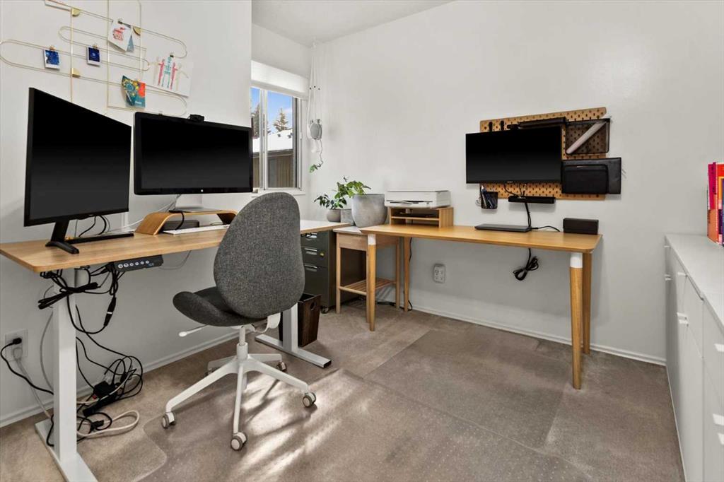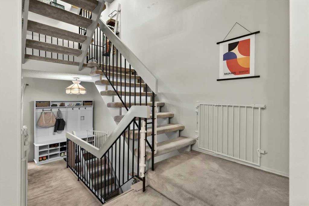 Hey Y'all! Welcome to the ever-loved Lakeview Green community, one of Southwest Calgary’s most walkable and family-friendly neighbourhoods. This split-level END UNIT offers 3 bedrooms, 2.5 bathrooms, and 1,360 sq ft of flexible living space designed for easy, low-maintenance living. The main level opens with a practical entry and guest bath beside the large kitchen, featuring painted cabinetry, a sunny courtyard window, and newer appliances (fridge and dishwasher 2025). A generous dining area flows into the dramatic vaulted living room, where a gas-starter wood-burning fireplace and expansive glass doors bring in beautiful natural light. Step outside to your private fenced patio surrounded by mature trees, perfect for morning coffee, evening wine, or letting pets relax outdoors. Upstairs you’ll find three well-sized bedrooms, convenient upper-floor laundry, and two full bathrooms, including a comfortable primary suite with large walk-in closet and 3-piece ensuite. A rare bonus: two underground parking stalls located directly beside your private entrance, plus a secure mechanical/storage room with over 260 sq ft of additional space—ideal for bikes, seasonal gear, or even a small home gym. Lakeview Green II is a well-managed, pet-friendly complex with a strong reserve fund and proactive condo board, loved for its community feel and unbeatable location. Walk to four schools, parks, local shops, North Glenmore Park, Weaselhead Natural Area, and off-leash pathways. Grab a treat at the beloved Lakeview Gluten Free Bakery, a latte at local favorite, Sierra Cafe—all just minutes from your door. With quick access to downtown and major routes (10-15 mins to downtown), this is turn-key Lakeview living in one of Calgary’s most established southwest communities. Book your showing today!