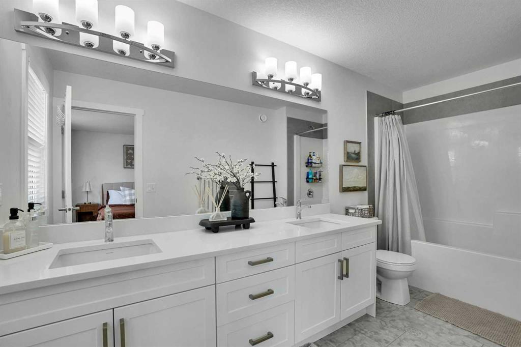 Welcome to this stunning home located in the sought after community of Air Ranch—where upscale living, modern style, and exceptional functionality come together! This beautifully maintained property offers 4 bedrooms, 2.5 baths, and a double attached garage, complete with an extended, widened driveway that provides generous additional parking. From the moment you arrive, you’ll appreciate the thoughtful upgrades, including a concrete walkway that leads to the fully maintenance free backyard—perfect for effortless outdoor living. Enjoy summer evenings on your spacious concrete patio or relax on the upper deck. There’s a gas line hookup for easy summer barbecues, so no need to hassle with propane—just fire it up and enjoy. Step inside to a bright, open concept main floor featuring a flex room/bedroom, a spacious foyer, and a stylish living area highlighted by a center electric fireplace. The chef inspired kitchen showcases a good size quartz island, modern cabinetry, and seamless flow into the dining area with sliding doors to the backyard—ideal for entertaining. Upstairs, retreat to your luxurious primary suite complete with a spa like 5 piece ensuite. The upper level also features two additional generous bedrooms, a 4 piece bath, a cozy bonus room, and a conveniently located laundry room. The unfinished basement is wide and open for your creative design and also features a rough in for a bathroom and a side entrance, offering excellent future development potential. Located close to schools, playgrounds, pathways, grocery stores, and essential amenities—plus just a short drive to South Health Campus—this home offers the perfect blend of comfort, convenience, and style. Pride of ownership is evident throughout, making this a true showstopper you won’t want to miss!