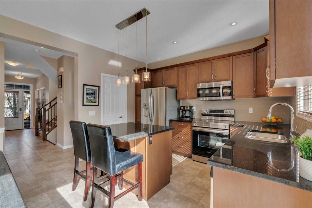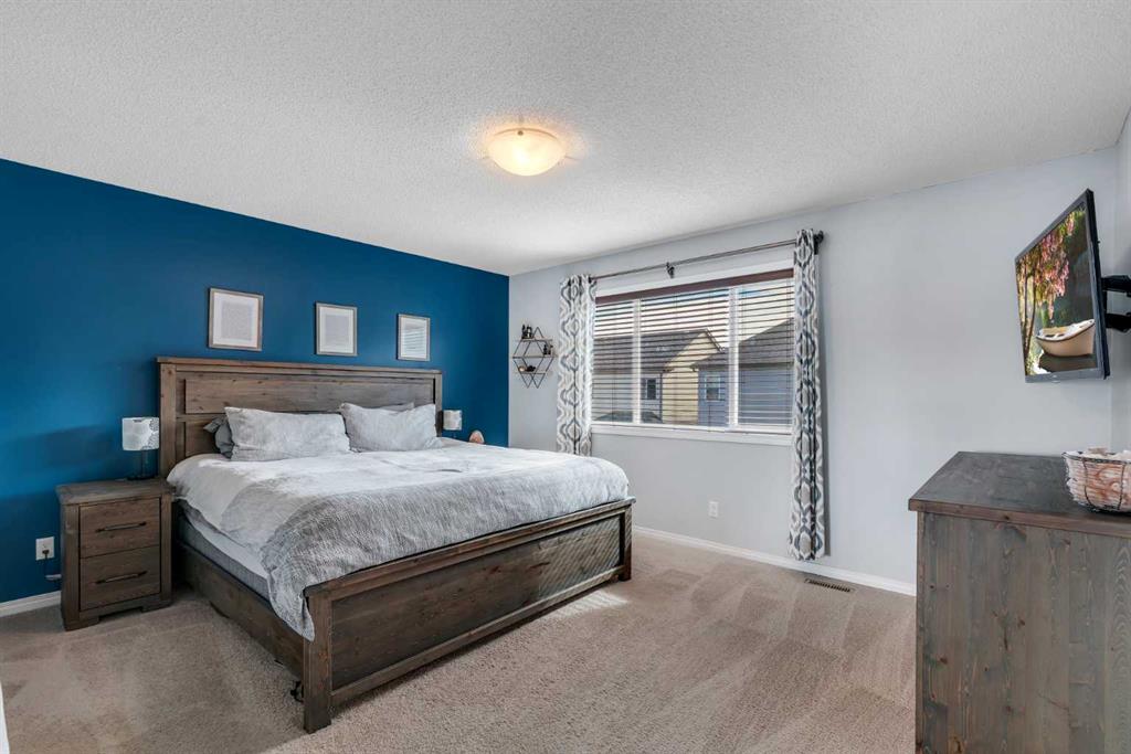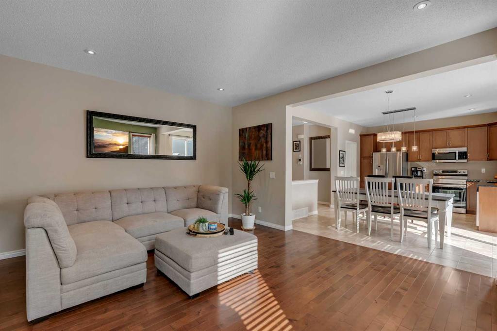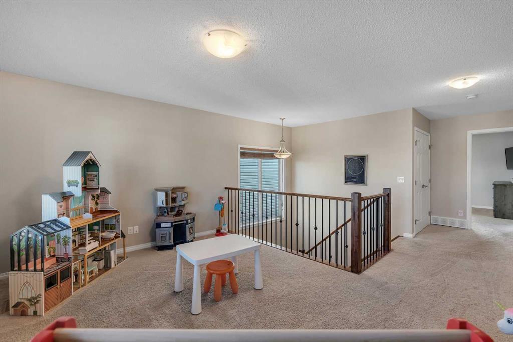 Pride of ownership is evident throughout this well-maintained, move-in ready home featuring a fully finished layout tailored for growing families and everyday comfort. The welcoming main level unfolds with an abundance of natural light, where a thoughtfully designed kitchen anchors daily routines with granite countertops, stainless steel appliances and efficient workspace that keeps everything within reach. Seamless flow continues into the dining area where sliding doors extend living outdoors, supporting easy barbeques and quiet evenings on the deck. Relaxation is invited in the adjacent living room around the ambient gas fireplace while extra windows draw sunlight deep into the space. Daily organization is simplified by a tucked-away powder room and a large walk-in entry closet that keeps jackets, shoes and bags neatly stored. The upper level is equally well planned with a lofted bonus room that introduces flexibility for a play area, home office or comfortable place to unwind. Retreat at the end of the day to the private primary oasis boasting a 4-piece ensuite and walk-in closet, creating a quiet space to recharge. Two additional spacious and bright bedrooms, including one with its own walk-in closet, are complemented by a full 4-piece bathroom. Convenient upper level laundry streamlines daily routines. A fully finished basement expands the living space with durable LVP flooring and a large rec room centred around a wet bar that makes snacks and drink refills during movie nights or gatherings effortless. A fourth bedroom and a 4-piece bathroom accommodate guests or older children with ease, while ample storage supports long-term organization. Outdoor living is just as inviting with a sunny south-facing backyard that maximizes natural light throughout the day. An expansive deck sets the stage for summer hosting while a large fenced yard allows kids and pets to play safely. Evenings are best spent gathered around the firepit, creating a comfortable setting to unwind under the open sky. This outstanding location connects easily to everyday convenience in the sought-after community of South Windsong within walking distance to Coopers Town Promenade shops, dining, childcare and local businesses. Nearby parks, green spaces and pathways support an active lifestyle while easy access to Calgary, the airport, CrossIron Mills and Costco keeps commuting and errands simple and efficient. Truly an exceptional location for this gleaming, move-in ready home.