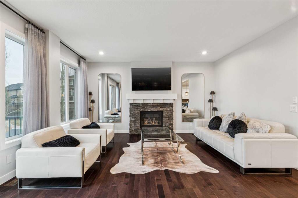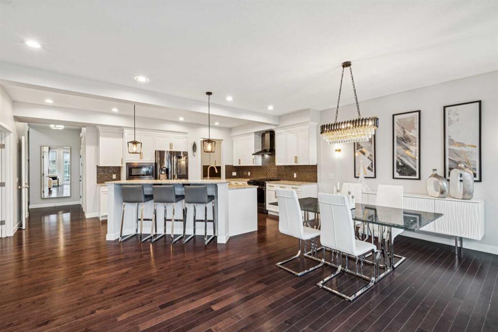 This fully finished two-storey walkout in Mahogany offers over 4,500 sq ft of developed living space on a quiet street with direct pathway access to a nearby park. A grand entryway with soaring ceilings creates an impressive first impression, setting the tone for the bright and open layout enhanced by 9’ ceilings on every level. The main floor is designed for both everyday living and entertaining, featuring a modern kitchen with a gas stove and newer dishwasher that flows seamlessly into the dining and living areas. Thoughtful upgrades throughout include updated light fixtures, faucets, cabinet hardware, stylish accent walls, and a refreshed powder room, giving the home a clean, contemporary feel.