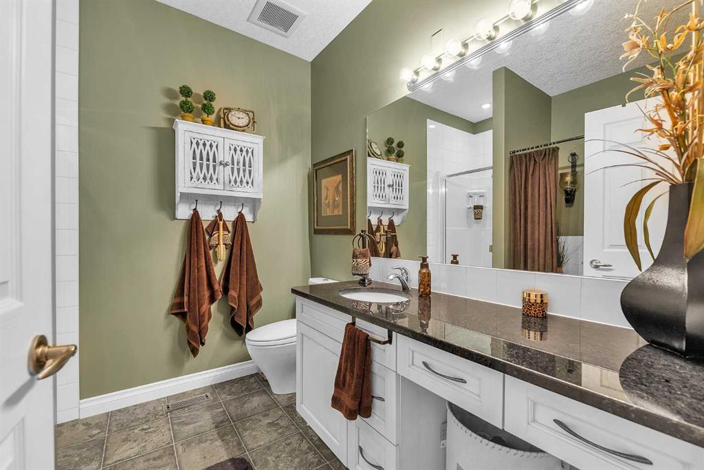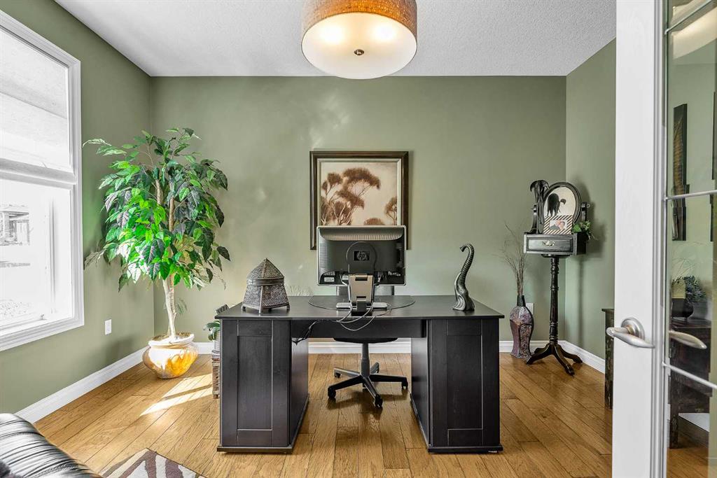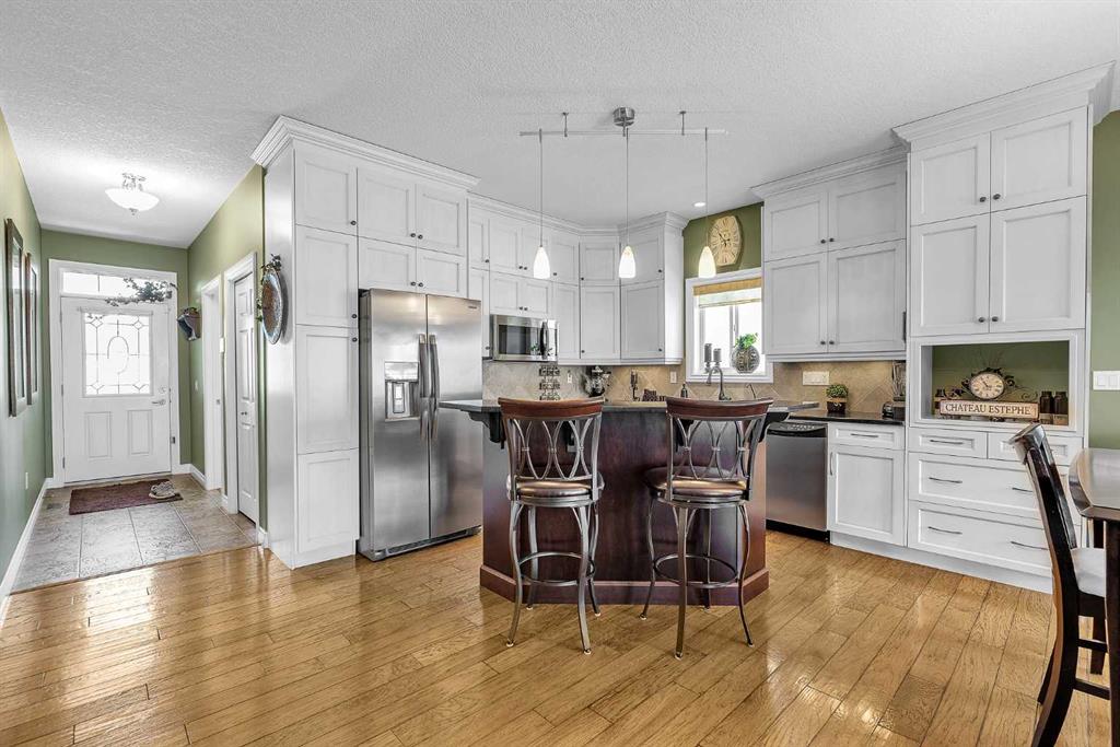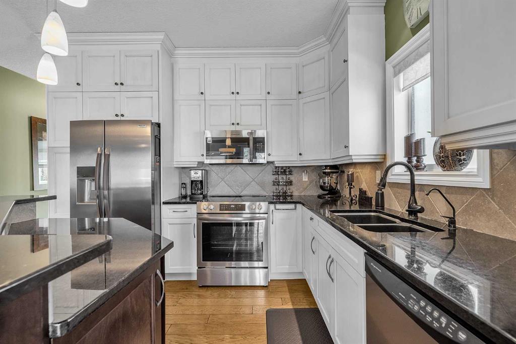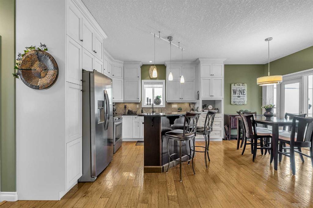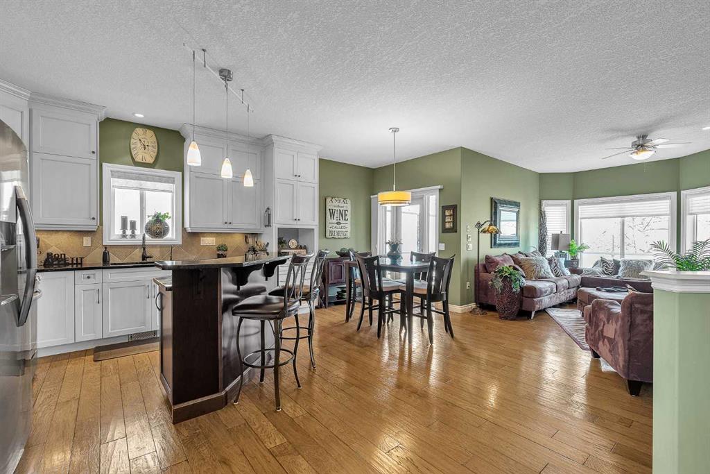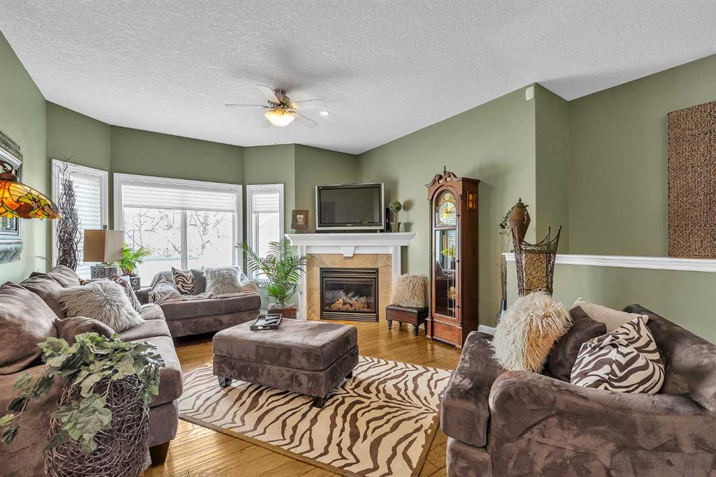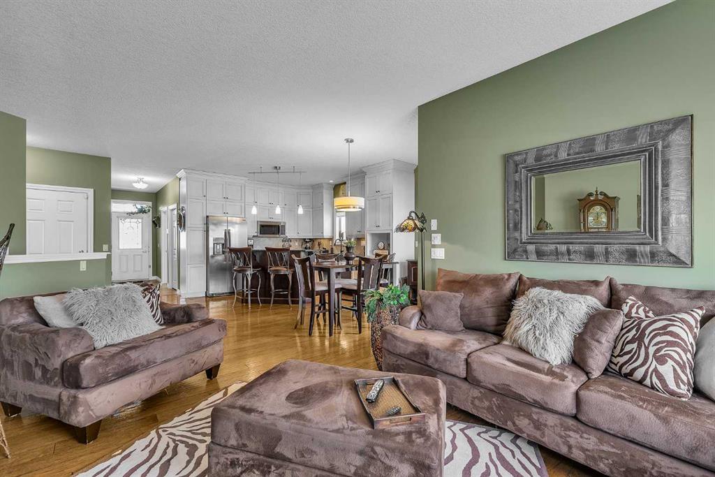 THESE BUNGALOW VILLAS RARELY COME ON THE MARKET! IMMACULATE, MOVE-IN READY CONDITION | LOW CONDO FEES | AIR CONDITIONING | INSULATED DOUBLE ATTACHED GARAGE | NO PET RESTRICTIONS | PRIVATE STREET | Welcome to 117 River Heights View, located in the premier adult-living community of River Heights Garden Residences. This is a true hidden gem in Cochrane, exceptionally well managed by dedicated residents who take pride in maintaining the complex to a very high standard, with thoughtful long-term planning for maintenance and upkeep. From the moment you step inside, the pride of ownership is obvious. Gleaming hardwood floors, immaculate walls, and like-new baseboards create a warm and inviting first impression. The front sitting room offers excellent flexibility and works perfectly as a home office, den, or potential third bedroom. The open-concept main floor features a chef-inspired kitchen with stone countertops, stainless steel appliances, beautiful cabinetry, and ample storage and prep space for hosting family and friends. The living and dining area is centered around a cozy gas fireplace, one of two fireplaces in the home, making the space both comfortable and welcoming. Step outside to the huge wraparound rear deck, where you can enjoy outstanding private views while being sheltered from the westerly breeze (check out the photos to see the Deer). There is also a convenient gas line for your BBQ, making outdoor entertaining easy. The spacious primary suite includes a custom shower, and Stone countertops. The main floor also offers an oversized 2-piece bathroom, convenient upper-floor laundry, and additional storage. Downstairs, the fully developed basement adds exceptional living space with a large family/games room that could easily accommodate a pool table. A second gas fireplace keeps the lower level warm and comfortable during the cooler months. The basement also includes a generous bedroom and a full 4-piece bathroom, perfect for visiting family or guests. This quiet and private complex offers quick access to Highway 22, Calgary, and the mountains, along with nearby pathways for walking or cycling. Plus, you are only a 5-minute drive to central Cochrane and all the services and amenities you need. This self-managed complex is healthy, well-funded, and highly desirable.