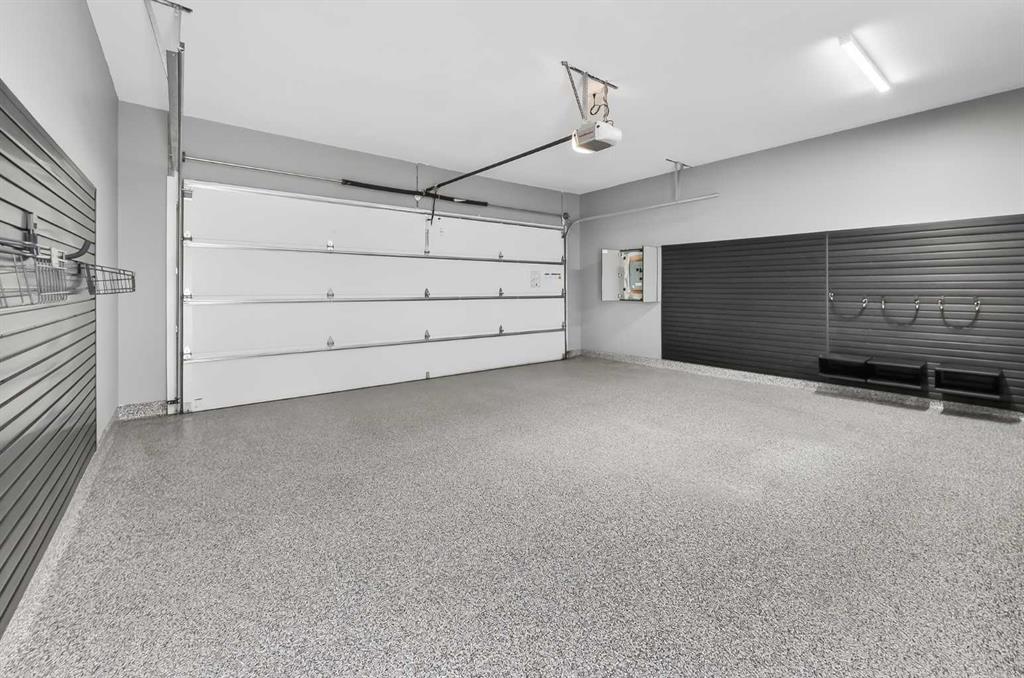 The primary suite is a private retreat, featuring 10-foot ceilings, large windows, and a statement chandelier. A generous walk-in closet provides exceptional storage, while the spa-inspired 5-piece ensuite offers quartz countertops, Calacatta-style tile, a fully tiled glass rain shower, and a luxurious soaker tub. The fully developed basement is designed for comfort and entertaining, complete with in-floor heating and plush carpeting. A large recreation and theatre area is complemented by a built-in wet bar with quartz countertops, custom cabinetry, and a bar fridge. A custom wine feature with integrated seating adds a unique touch. This level also includes a spacious guest bedroom with a walk-in closet and a modern 3-piece bathroom with a floating quartz vanity and fully tiled glass shower. The double detached garage is fully finished with built-in storage and a durable polyaspartic decorative chip floor system. Priced to sell!