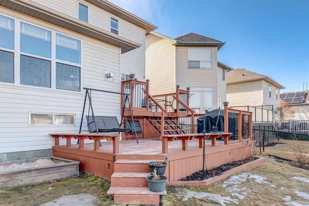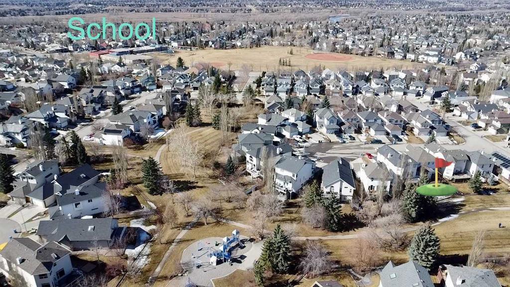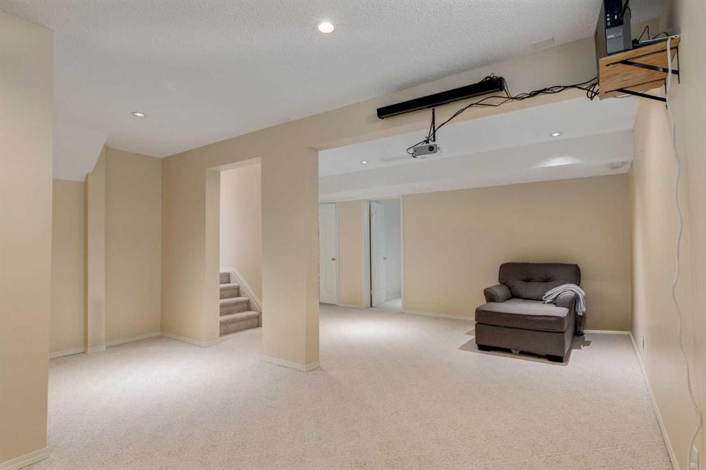 Stunning Two-Story Family Home in Prime Location! Welcome to over 2,600 sq ft of thoughtfully designed living space in one of Calgary's most sought-after family communities. This impressive two-story offers the perfect blend of comfort, style, and functionality. Tucked away on a quiet street and backing onto greenspace and park making this the prefect family home. The bright, open-concept main floor features beautiful oak hardwood flooring, oversized windows flooding the space with natural light, and a tile-faced gas fireplace creating a warm focal point. The updated kitchen boasts a nice modern color palette , a corner pantry, and a central island and generous storage. Stainless steel appliances, a window over the sink with lovely greenspace views, and a spacious breakfast nook complete the space. French doors open to the large 2 level rear patio deck ideal for both entertaining and quiet relaxation. A large bright flex room space with high vaulted ceilings offer a great space for a home office or a 2nd spacious living room area. Upstairs you will find a huge primary bedroom with spa like ensuite featuring jetted soaker tub and double vanity and spacious walk in closet. A rare and very cool loft/office nook balcony space overlooking the front room just off the primary bedroom. The upper level continues with 2 more generously sized bedrooms and a full 4 pc bathroom. Downstairs the basement is fully finished featuring a huge 4th bedroom, cozy and spacious rec room and a massive wrap around storage room area. This home is in a fantastic location, close to school, greenspace, golf course, walking paths, parks and 130 Ave shopping. A rare combination of location, space, and quality—schedule your showing today!