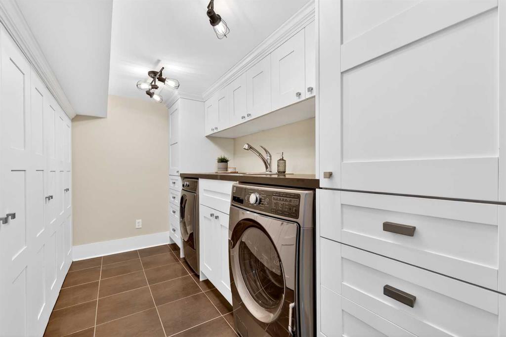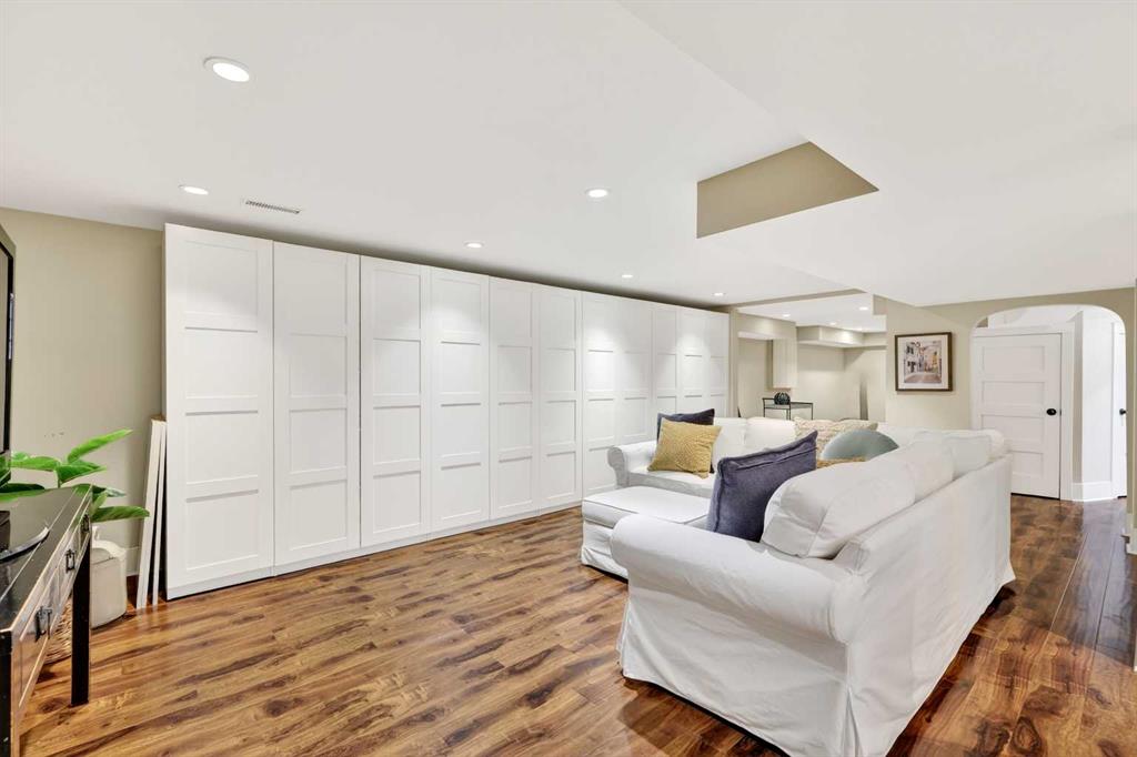 The fully finished lower level is a true bonus: you'll love the extra space and storage in the recreation area, with its abundant storage. The laundry room is a dream, with built-in cabinetry, a sink, lots of countertop space, and incredible storage. The fitness/multi-purpose area and the high-end bathroom (with an elegant soaker tub and heated tile) round out the basement.