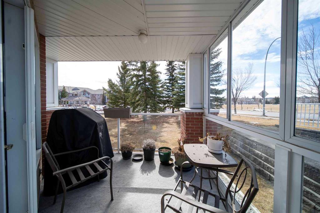 A three-piece main bathroom and a large in-suite laundry room with abundant storage add everyday convenience. Additional thoughtful touches include a spacious entry foyer, tile flooring, a wall-mounted A/C unit, a large kitchen pantry, built-in features, and linen closets in both bathrooms. The west-facing balcony has been recently upgraded and partially enclosed to block the wind, making it the perfect spot to enjoy long summer evenings. Pride of ownership is evident throughout this warm and cozy home.