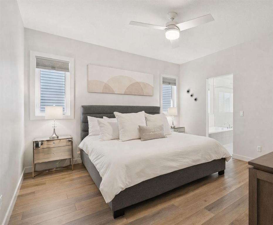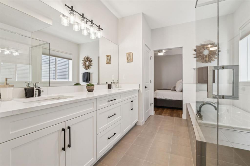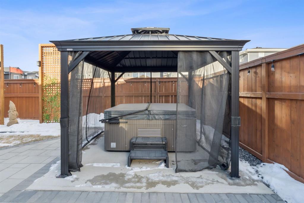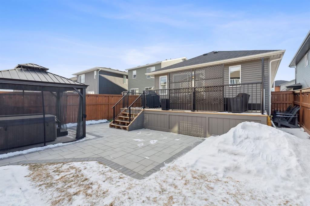 **OPEN HOUSE SATURDAY MARCH 21 FROM 12PM-2PM** Welcome to this stunning, FULLY FINISHED BUNGALOW built in 2024, offering QUALITY UPGRADES and a modern, functional layout designed for effortless living. The main floor features LUXURY VINYL PLANK FLOORING, a spacious foyer, and a generous PRIMARY RETREAT with a 5-PIECE ENSUITE. This spa-inspired space includes IN-FLOOR HEATING, QUARTZ COUNTERTOPS, DOUBLE UNDER-MOUNT SINKS, a TILED WALK-IN SHOWER with bench with glass surround, and a relaxing SOAKER TUB. The walk-in closet offers mdf shelving and a WASHER & DRYER making it convenient for everyday living. The OPEN-CONCEPT living area is perfect for entertaining, highlighted by a GAS FIREPLACE WITH MANTLE and a stylish kitchen featuring QUARTZ COUNTERTOPS, FULL-HEIGHT CABINETRY, SOFT-CLOSE DOORS & DRAWERS, and PULL-OUT GARBAGE & RECYCLING. The FULLY DEVELOPED BASEMENT offers HIGH CEILINGS, plush carpet, TWO ADDITIONAL BEDROOMS, a LARGE STORAGE AREA, and a beautifully finished bathroom with QUARTZ COUNTERTOP, UNDER-MOUNT SINK, TILE FLOORING, and a TUB/SHOWER COMBO. Additional upgrades include a 200-AMP ELECTRICAL PANEL and HOT WATER ON DEMAND. Step outside to enjoy the UPGRADED BACKYARD, featuring a FULL-WIDTH DECK, plus a PRIVATE HOT TUB and GAZEBO set on a CONCRETE PAD with PATIO STONES—perfect for relaxing or entertaining. Located in the desirable community of FIRESIDE, this home offers a PEACEFUL, LOW-MAINTENANCE LIFESTYLE ideal for COUPLES, DOWNSIZERS, and those seeking a more RELAXED PACE. With WALKABLE PATHWAYS, PARKS, nearby SHOPS & AMENITIES, and EASY ACCESS to major routes, Fireside blends comfort, convenience, and community, making it a wonderful place to call home.