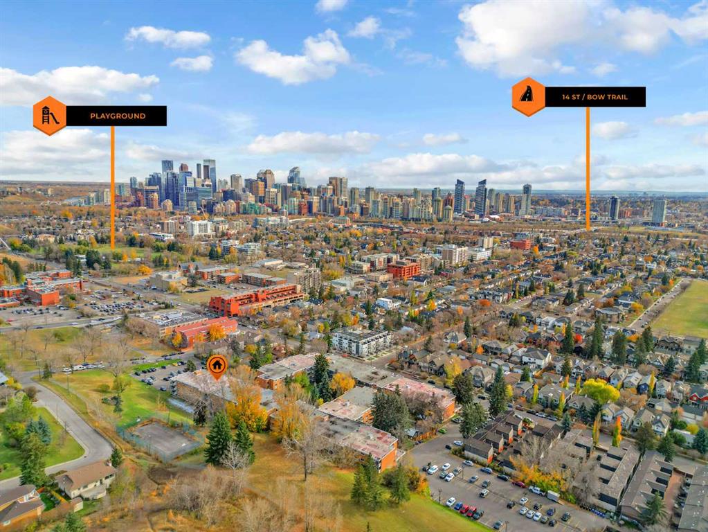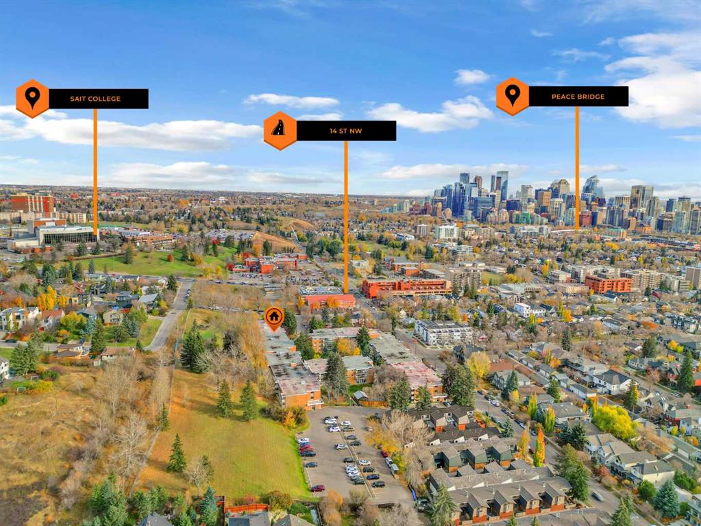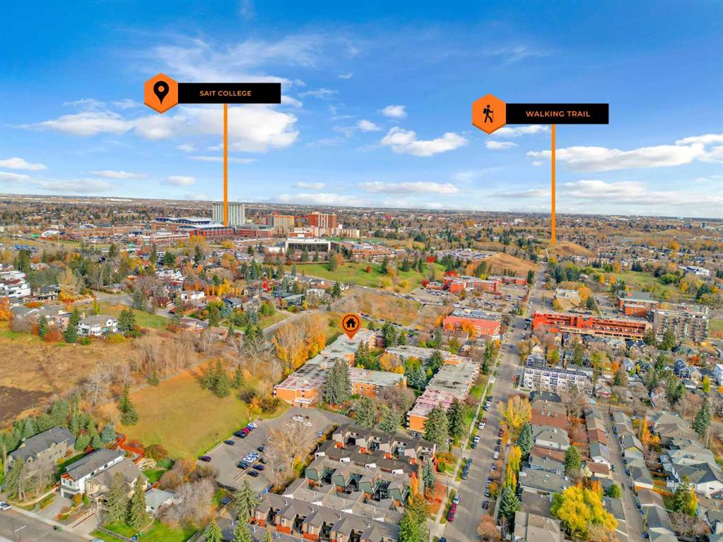 Stunning Top-Floor Condo in Briar Hill – Ideal Location for Families, Students, and Investors! Offering nearly 1,200 square feet of contemporary living, all on one level. This rare 3-bedroom, 2-bathroom unit boasts a modern open floor plan, featuring a sleek galley kitchen, newer cabinets, updated flooring, and stylishly renovated bathrooms. It’s the perfect blend of comfort and convenience. This well-maintained concrete building has seen significant updates, including balconies (2014), windows, fire alarm system, and roof (2015). The generous private balcony offers serene views of green spaces and community gardens, with the added convenience of being able to see your parking stall—perfect for using your vehicle’s auto-start during colder months. The unit itself features in-suite storage, a European washer, and access to a common laundry area. Condo fees include everything, and access to the building’s excellent amenities. Enjoy the basketball court, a flourishing community garden, and a large covered outdoor patio with BBQs, ideal for entertaining. There’s also a party room available for larger gatherings, perfect for hosting friends and family. The property is situated in the peaceful and highly desirable Briar Hill community, known for its walking paths and green spaces, yet conveniently close to all major amenities. Located directly opposite SAIT—making it an ideal spot for students or professionals—the condo is also just steps from the C-Train and minutes from the trendy shops and restaurants of Kensington. For families, the location couldn't be better, with top-rated schools within a 10-minute drive. Don't miss this incredible opportunity – schedule your private viewing today!