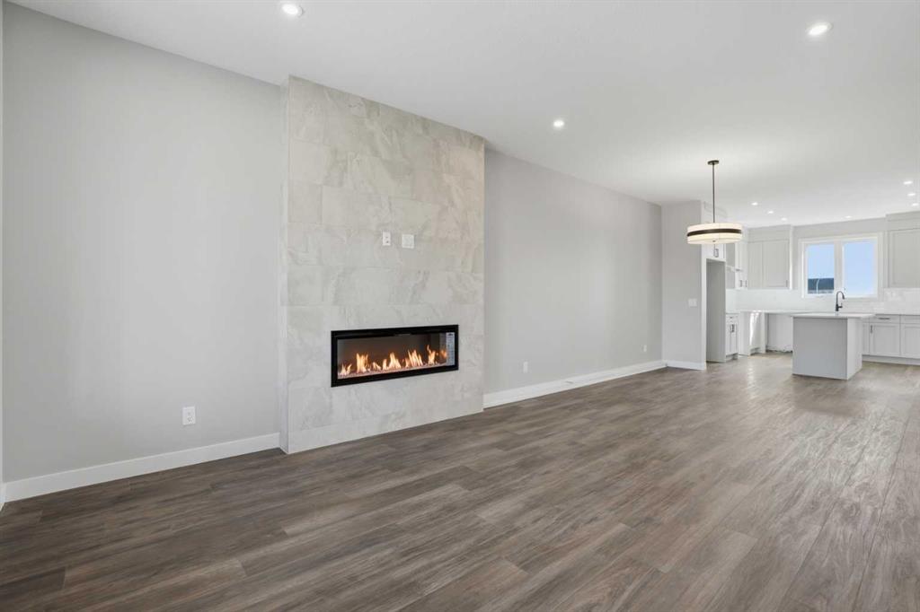 BRAND NEW, MOVE-IN READY ** Broadview Homes Presents the Newport III | Semi-Detached | 1,674 SqFt | 3 Bedrooms | 2.5 Bathrooms | Open Floor Plan | High Ceilings | Rear Kitchen | Quartz Countertops | Full Height Kitchen Cabinets | Stainless Steel Appliances Builder's Package | Kitchen Island with Barstool Seating Area | Electric Fireplace | Upper Level Family Room | Upper Level Laundry | Unfinished Basement | Rear Lane Parking | Across from Greenspace. Welcome home to the Newport III by Broadview Homes—a beautifully crafted semi-detached home offering 1,674 SqFt throughout the main & upper levels with an unfinished basement ready for your future development. Step inside to a thoughtfully designed space featuring high ceilings, recessed lighting and large windows that flood the home with natural light.