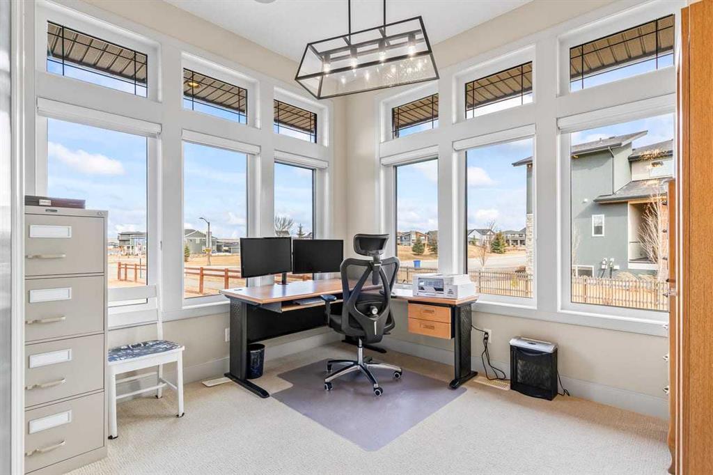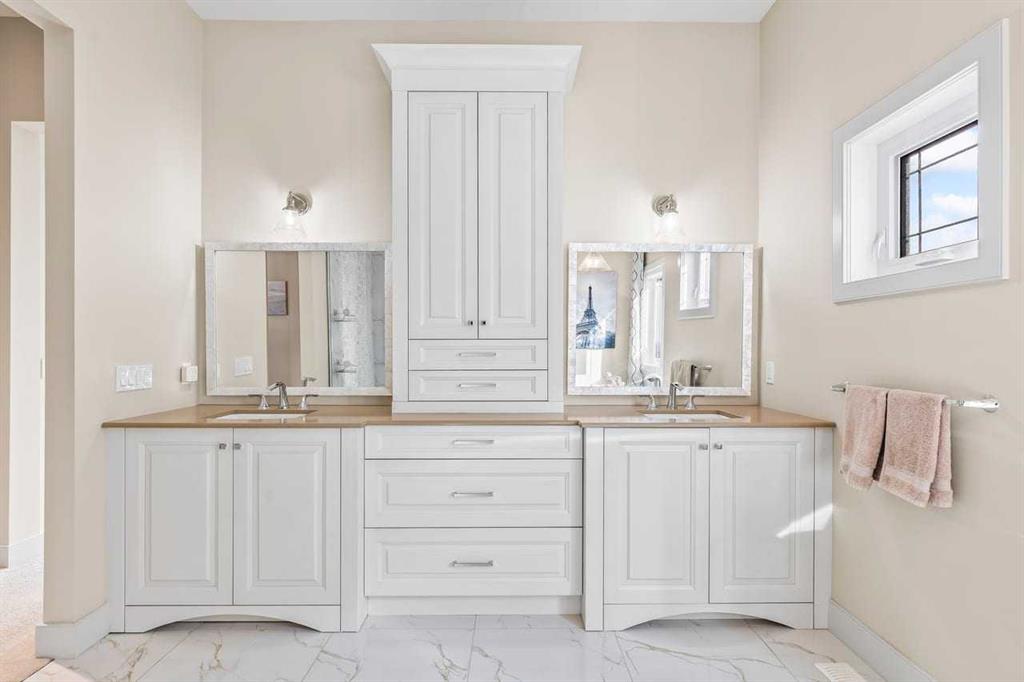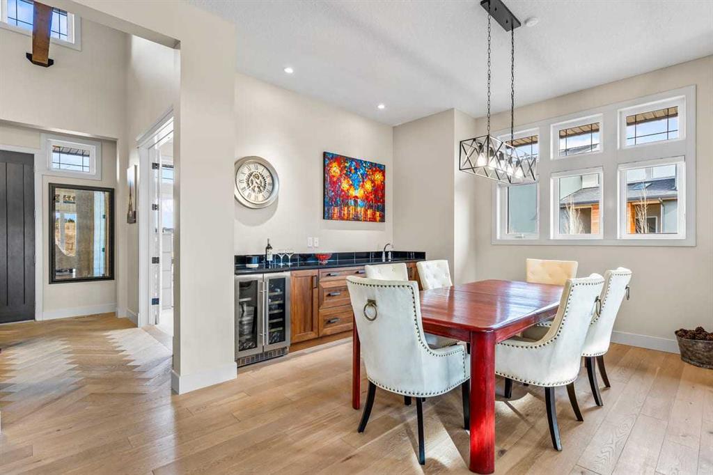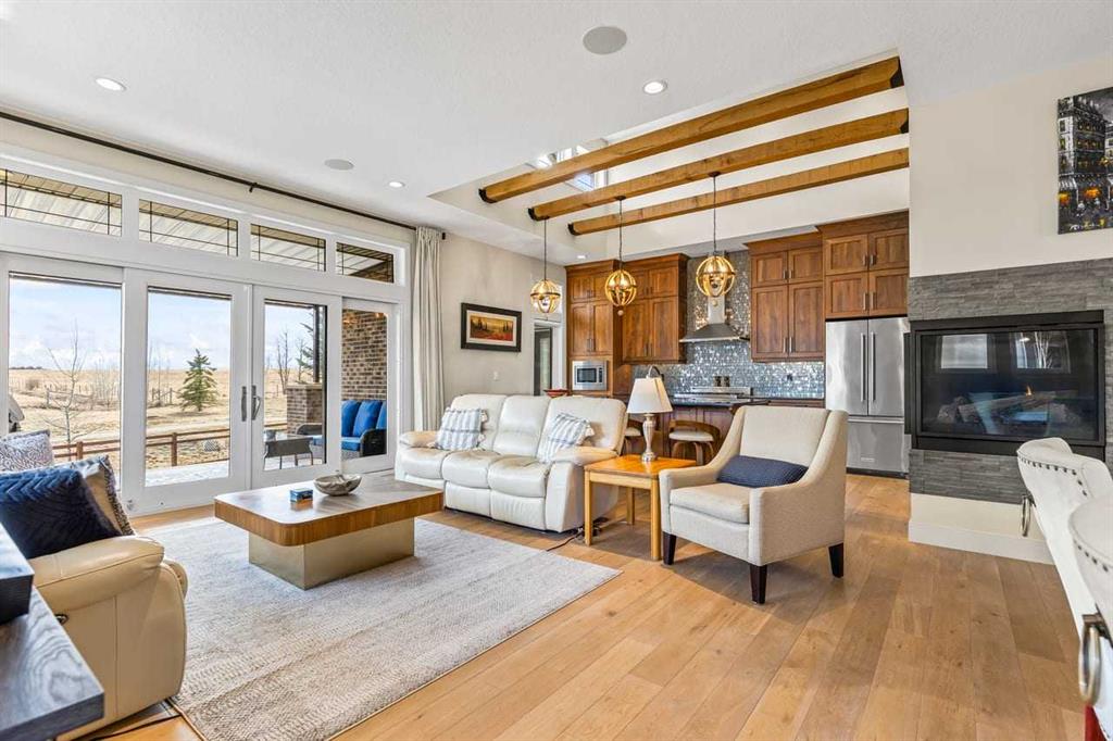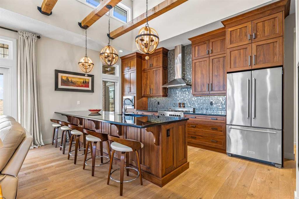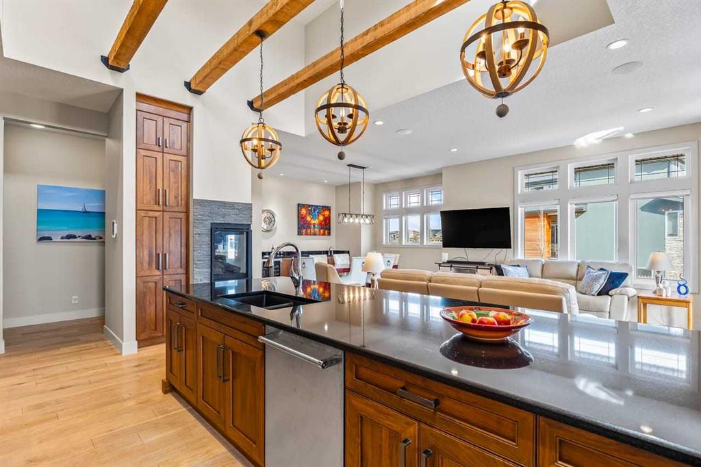 This stunning former showhome in the award-winning community of Harmony perfectly blends meticulous craftsmanship with an active and lakeside lifestyle. Spanning over 3,600’ of thoughtfully designed living space, the home impresses with vaulted ceilings, exposed beams, and premium upgrades throughout. The heart of the home is a chef-inspired kitchen featuring upgraded appliances, a butler’s pantry, and extensive cabinetry, flowing seamlessly into a bright dining area and a living room complete with a wet bar. The well-appointed main level is highlighted by a king-sized primary suite that fills with natural light. The spa-like ensuite offers a classic slipper tub, a large walk-in shower, and a walk-in closet. A bright home office, laundry room, and powder room complete this level. The high quality extends into the basement, which is designed for comfort and features two full-sized bedrooms, a large rec room, a wet bar, and a 4-pc bathroom with a double vanity and radiant heating throughout the lower level. Other features and upgrades include triple-pane windows, herringbone-engineered hardwood detailing, central air conditioning, a Kinetico water softener/filter, a central vacuum, built-in speakers, high-quality window coverings, a storage shed, and garage shelving. Situated on a prime corner lot backing onto open field and pathways, the property offers unobstructed mountain views, a south-facing backyard, across from the park/greenspace, and one block away from Harmony South Beach. The outdoor space is fully realized with landscaping, irrigation, a custom deck cover, fencing, and Gemstone lighting. Even the heated triple garage is upgraded with durable polyaspartic flooring and a natural gas heater. Living in the award-winning community of Harmony, you’ll have access to two private lakes, beach access, community pathways, playgrounds, Mickelson National Golf Club, Adventure Park, and local amenities, plus the future Bingham Crossing.