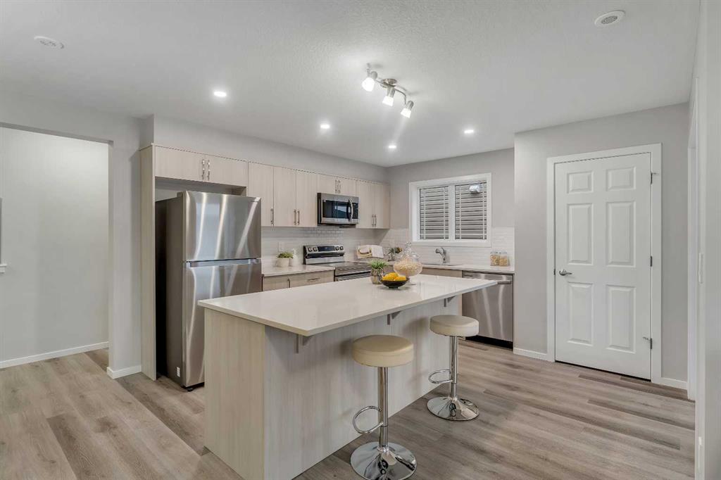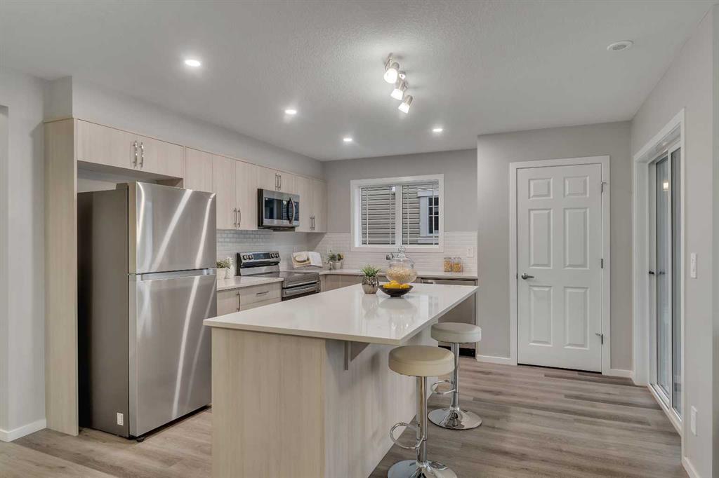 Are you dreaming of an end-unit townhome with no condo fees and an attached garage that shows like it's brand new? Welcome to 316 Windbury Road. This home boasts over 1,400 square feet of living space with upgraded finishes throughout. The main floor features an open layout that is filled with natural light, thanks to its west-facing exposure and additional windows available only in an end unit. The kitchen features quartz countertops, modern cabinetry, and sleek stainless steel appliances with a gas line should you wish to upgrade to a gas range. It seamlessly connects to the dining and living areas, creating an ideal space for entertaining. Enjoy summer evenings on your sunny deck with a gas line for easy bbqing. A powder room complements the main living level. Upstairs, you will find three bedrooms, including a spacious primary bedroom with an ensuite bathroom and a generous walk-in closet. The two additional bedrooms are well-sized and share a full bathroom. Plus, the upstairs laundry makes tackling chores a breeze. Located in the growing community of Southwinds, this home is conveniently close to parks, schools, and everyday amenities and has quick access to Deerfoot Trail.