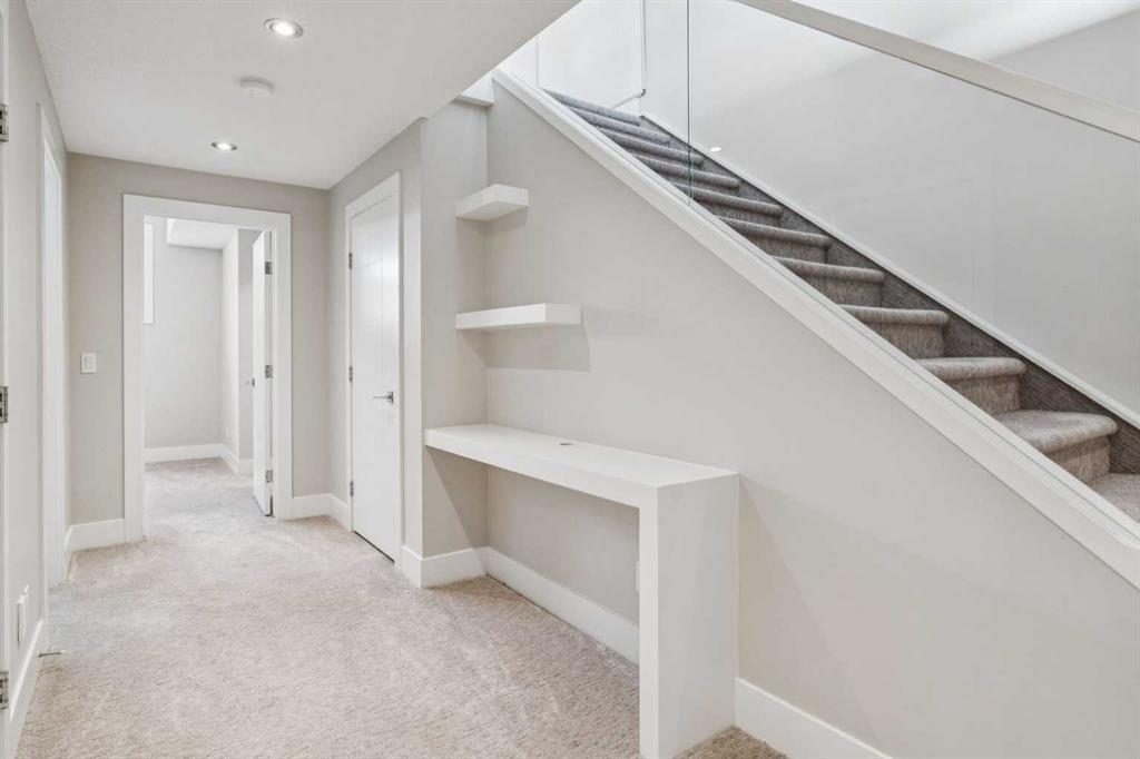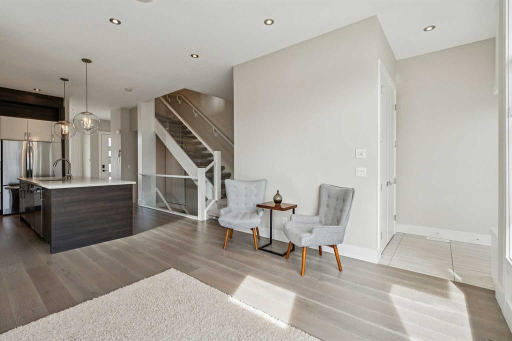 Experience modern luxury in this stunning semi-detached infill facing Stanly Jones park. Ten foot ceilings welcome you to a main floor flooded with natural light from the large park facing windows. Captivating design with a floating staircase, a built-in wine rack, and a breathtaking marble fireplace and wide-plank hardwood floors throughout the main level. The gourmet kitchen is a chef's dream, featuring sleek cabinetry, plenty of storage space, quartz countertops, and stainless steel appliances. Enjoy the low maintenance back yard with a large concrete patio and artificial grass or all the amenities in the area while being able to refresh in your airconditioned home. The primary bedroom is a true retreat, offering a spa-like ensuite with a double vanity, a modern soaking tub, and a walk-in closet with built-in organizers. The other two bedrooms also have large windows and each have a walk-in closet. This home features 8 foot solid doors on the main and upper levels. The finished basement provides a perfect entertainment space, complete with a dry bar, wine fridge, built-in shelving, a fourth bedroom with walk-in closet and another 4 piece bath. Complete with a fully paved back lane leading to your double detached garage. Live in Renfrew, close to parks, shopping, restaurants and schools. Book your private showing today!