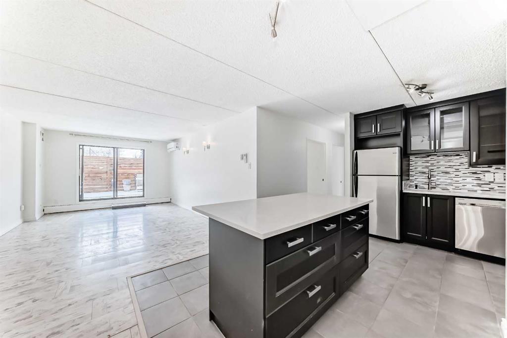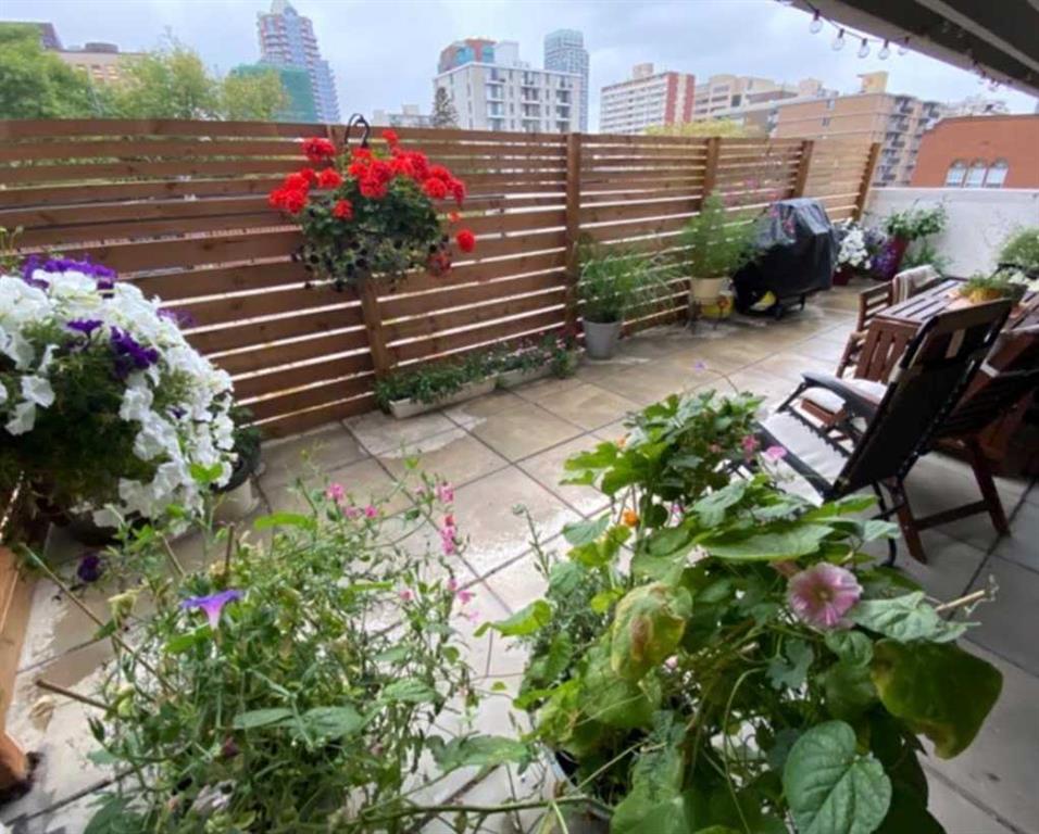 Welcome to this bright, once renovated 2 Bedroom, SOUTH-FACING CORNER UNIT in STONEHAVEN, 900 sq ft condo in Calgary’s vibrant Beltline—offering space, comfort, and standout features you won’t often find. Enjoy an open-concept living area with Boheme Oak AC5 (top-tier durability!) laminate flooring and a stylish island kitchen with quartz countertops, stainless steel appliances, breakfast bar and full pantry—perfect for everyday living and entertaining. The most attractive selling features is a massive, wood-fence, private patio with room for patio furniture, plants, BBQ, and even a hammock—your own outdoor retreat the city.-- Other selling features include: In-suite A/C mini-split (a rare upgrade), Pet-friendly environment (dogs & cats welcome), Secure covered assigned parking stall (#50), Condo fees that include heat, water & electricity, and common space security cameras, Pre-installed Telus fibre internet in the unit (getting your own dedicated fibre internet connection is just one phone call away), 2 spacious bedrooms (one with patio access + optional built-in Murphy bed), Updated 4pc bathroom with tile backsplash + quartz counters, a massive in-suite storage room (optional 1.5 year old chest deep freezer). Laundry just steps away on each floor, Solid concrete building (no post-tension cables). With a NEAR PERFECT Walk Score of 99 and Bike Score of 95, you’re steps from everything. A rare opportunity to own a versatile, move-in-ready home in an unbeatable location! Don't forget to click on our 3D TOUR!