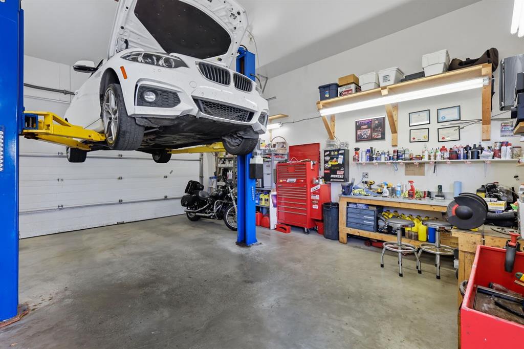 Now for the showstopper — the mechanic’s dream garage. Measuring approximately 26’ x 20’, this incredible space features 12.5’ ceilings, a 10’ insulated overhead door, 220V power, sub-panel, excellent lighting, shelving, & work benches that stay. Heated with a gas overhead heater, the garage also includes a 10,000 lb commercial-grade hoist (can be removed), making it perfect for serious projects or hobby work. The side-winder opener, stereo system, and security system complete this impressive setup.