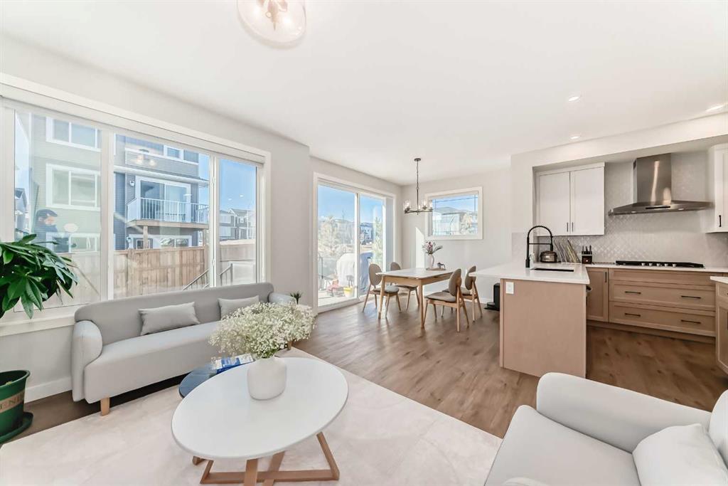 Welcome to this stunning 3-storey home, perfectly situated on a TRADITIONAL CORNER LOT beside GREEN SPACE. Featuring windows on all four sides, open views, minimum sidewalk maintenance, and a west-facing backyard that bathes in afternoon sunlight, this home combines privacy and natural light. This smart home also includes triple-pane windows and a high-efficiency furnace for enhanced comfort and energy savings. Located within walking distance to future schools and offering easy access to parks, pathways, and major routes, shopping and amenities—including Costco, T&T Supermarket, and a variety of restaurants—are just 12 minutes away. Main floor impresses with 9’ ceilings, expansive windows, and Luxury Vinyl Plank flooring throughout, creating a bright and modern living space. A versatile flex room with a barn door and large window offers the perfect setup for a home office or additional living area. The open-concept great room is centered around an electric fireplace with a floor-to-ceiling tile surround, seamlessly connecting to an executive kitchen designed for both everyday living and entertaining. The kitchen features built-in stainless steel appliances, a chimney hood fan, waterline to fridge, a quartz island counter, and a spacious walk-in pantry. Step outside to the rear deck for effortless indoor–outdoor living. The second floor offers 3 spacious bedrooms, each featuring large walk-in closets, with two walk-in closet enhanced by windows that bring in abundant natural light. A bright bonus room with two windows provides the perfect space for family gatherings or entertainment. The third-level is an absolute standout, offering a vaulted ceiling, windows on all sides, and a private balcony. This top-floor space can serve as a future entertainment area or additional living space, with one side overlooking serene green space and the other offering expansive views stretching as far as the Livingston community. A convenient half bathroom on this level completes the space, making it perfect for family gatherings, relaxation, or entertaining. Don’t miss this exceptional opportunity—experience the perfect blend of style, functionality, and location. Schedule your private tour today and see all this home has to offer.