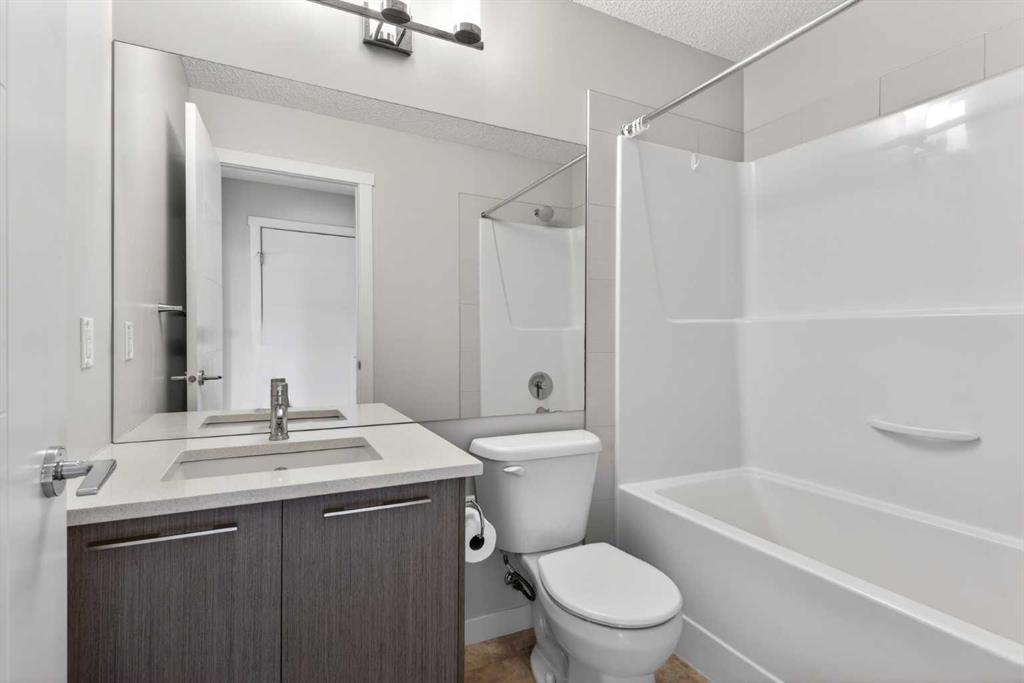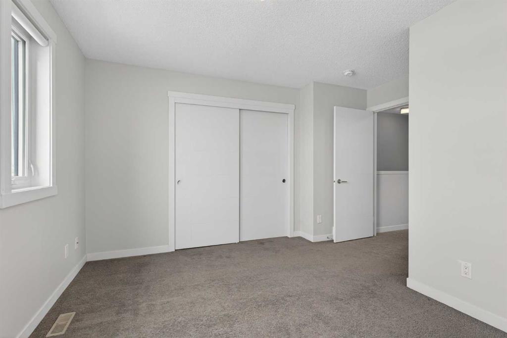The open-concept main floor is filled with natural light and features a spacious living and dining area, ideal for both everyday living and entertaining. The contemporary kitchen is equipped with quartz countertops, a breakfast bar, and ample cabinetry, providing both style and practicality. A mix of carpet, laminate, and vinyl flooring adds comfort and durability throughout, while high ceilings enhance the bright, airy feel of the home.