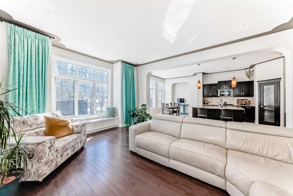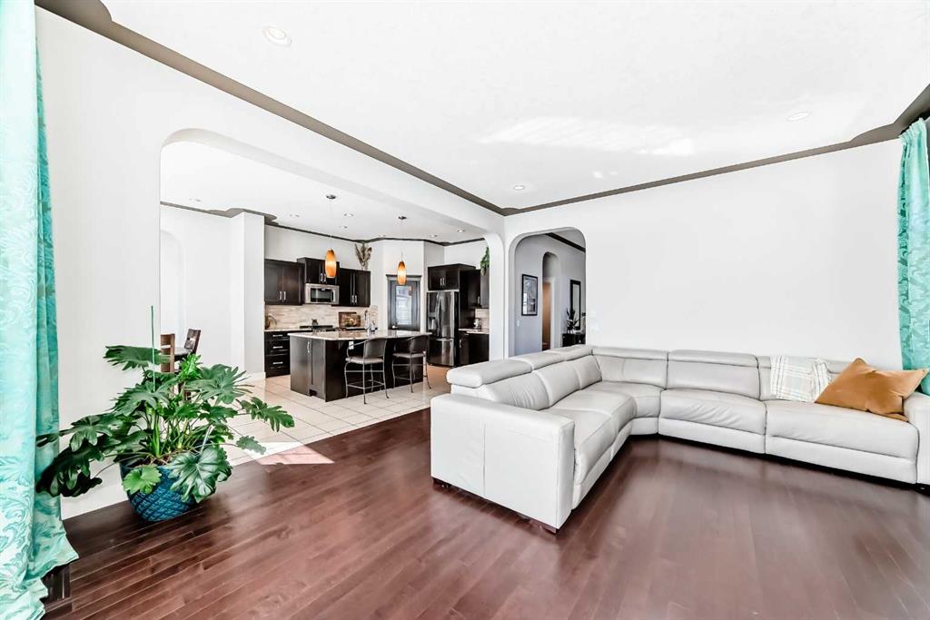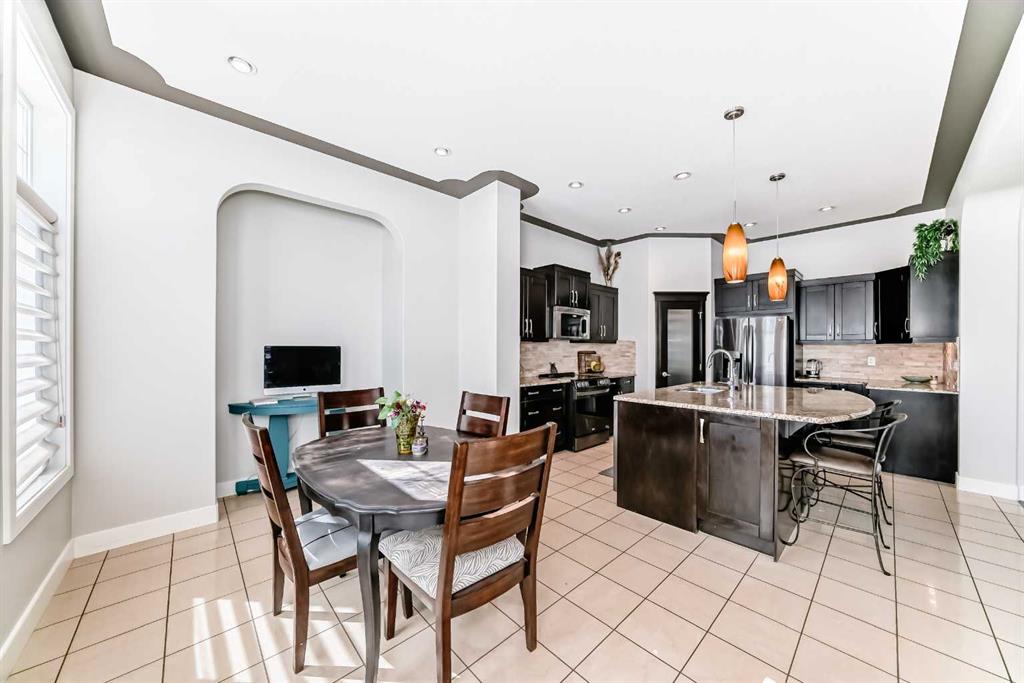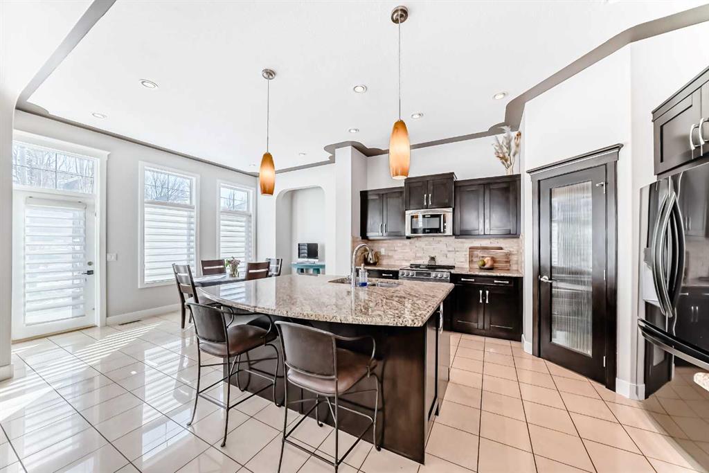 Impressively large and fully finished 2-storey offering a double attached garage, 4 bedrooms, 3 bathrooms and an unbeatable location—backing onto a greenspace & path, just a short walk to both Heloise Lorimer School and École des Hautes-Plaines schools. From the moment you walk in, you’re welcomed by a bright, open foyer with impressive 10-foot ceilings and a modern-looking floating staircase. The well-lit main living space is warm and inviting, featuring a fireplace and large, upgraded window package that fill the home with natural light. You’ll also notice the attention to detail throughout including bullnose granite countertops, beautiful architecture with arches, several built-ins, floor to ceiling tiled fireplace and custom crown molding & baseboards.