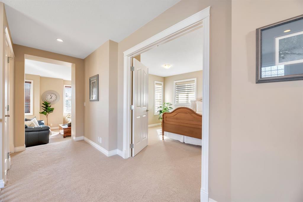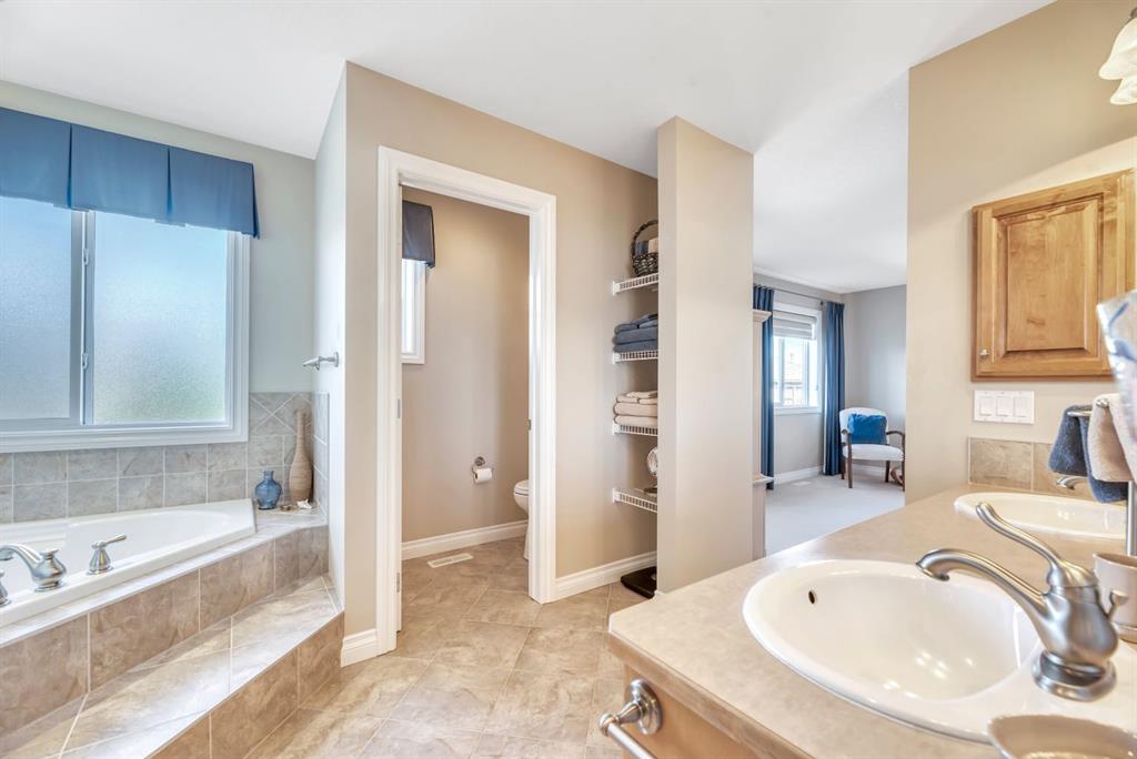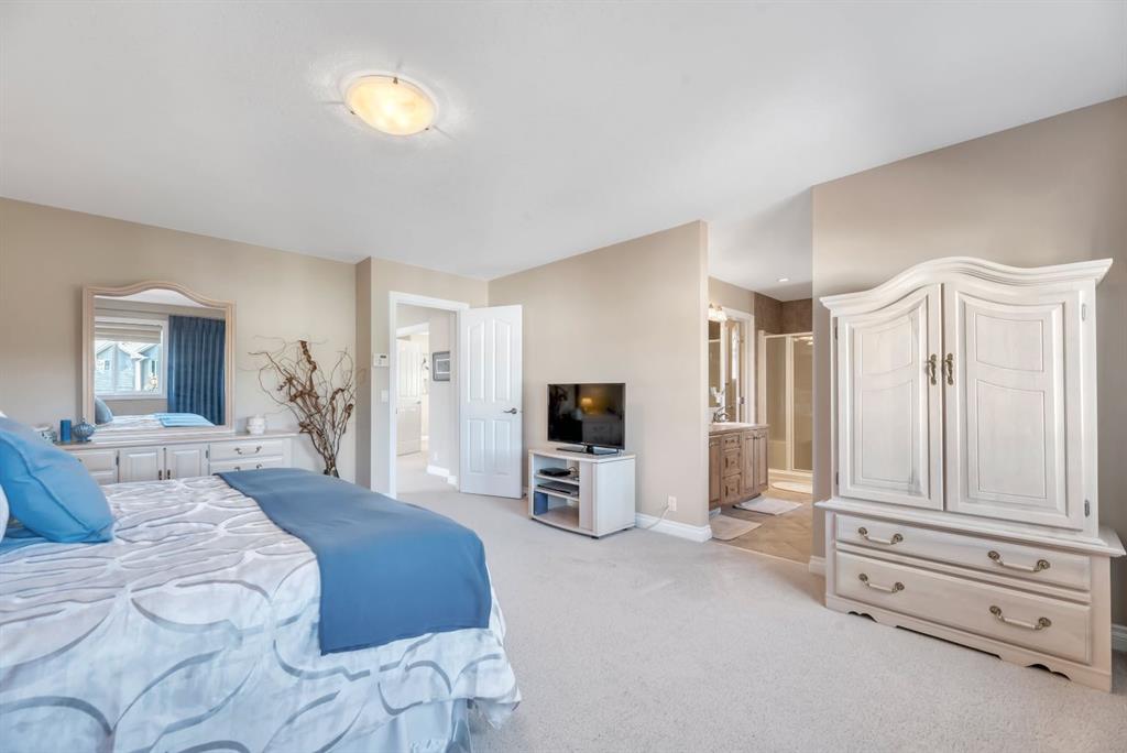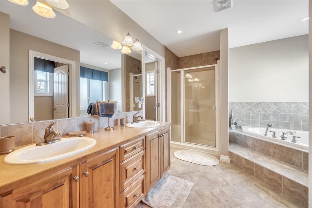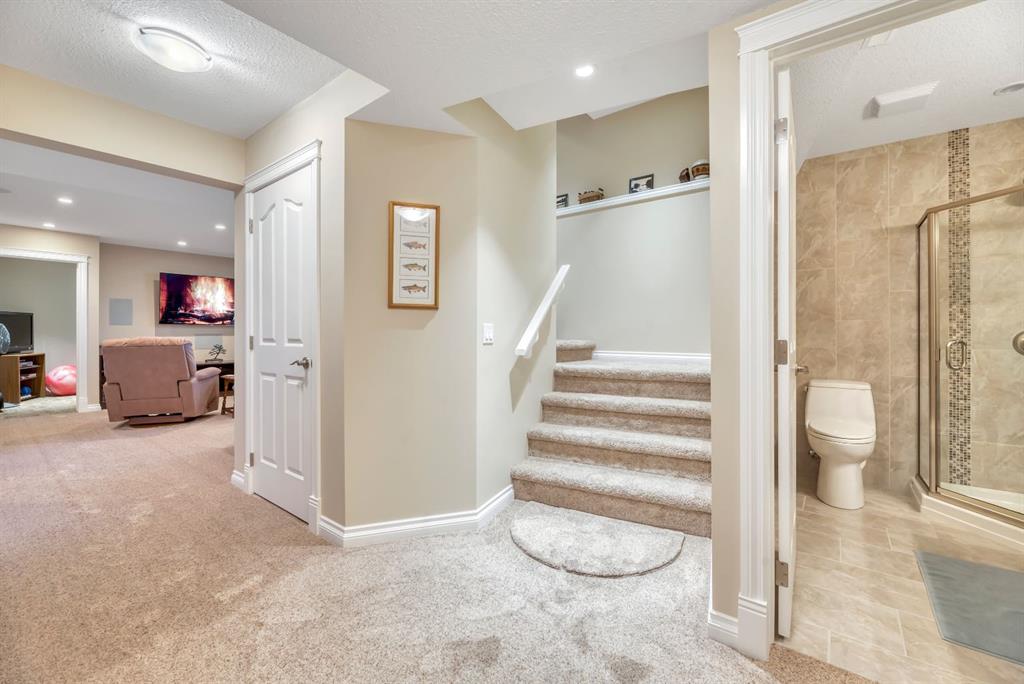 Welcome to this exceptional in the highly sought-after community of Evergreen SW, perfectly positioned on a very rare 8,223 sq ft private oasis lot surrounded by mature trees & professional landscaping inc. a large vegetable garden. Meticulously maintained, this custom Jager built 2-storey offers almost 3300 sq ft of refined living space & showcases pride of ownership at every turn. From the moment you arrive, the stunning solid oak front door sets the tone for the quality and craftsmanship found throughout. Inside, you’re greeted by a bright and elegant main floor featuring a versatile formal dining room/home office, expansive windows dressed with Hunter Douglas Pirouette blinds, and a warm, inviting living room anchored by a gas fireplace. High end flooring is throughout the home and has diagonally laid maple hardwood flooring for a timeless touch, complemented by plush carpeting for comfort & quality porcelain tile work.The beautiful kitchen offers maple cabinetry, a 6’ granite island with wine rack, undermount lighting, newer slide-in range and microwave hood fan, dishwasher, fridge and garburator. The heart of this home lies in the functionality. Step in from the double attached garage to the combo back entry/laundry room with dedicated wash sink. This space flows into a large walk through pantry with shelving on both sides offering unparalleled convenience for bringing in groceries & staying clean and organized. Speaking of clean, this home also has a central vac system. The backyard is your own private retreat—an incredible 550 sq ft two-tier cedar deck, freshly stained & complete with built-in bench seating, planters, gas line for BBQ (BBQ included), & under-deck storage. The beautiful landscaping is enhanced by a full irrigation & lighting system & includes a newer shed as well as 3 rain barrels, creating the perfect setting for a fabulous outdoor lifestyle! Upstairs, you’ll find a sunken bonus room, a full 4-piece bathroom, & a massive second bedroom with dual closets (easily converts into two bedrooms with the smart layout provided). The spacious primary suite overlooks the backyard & features a luxurious 5-piece ensuite with cozy in floor heat, dual sinks, soaker tub, separate shower, & a fully customized W/I closet.The basement has been developed with thought & care...includes great storage space, 3 piece bath with heated tile floor as well as tiled shower & walls. Enjoy family time, movie & sports nights with a wet bar on the way to the media room complete w/ built in speakers for max sound experience as well as a fireplace feature wall. Just behind is a great gym space (treadmill inc) with commercial carpet (& smart access to media receiver controls through the closet doors). The additional bedroom in the basement is a big bright space - comfortable for visitors or family members. Come and visit this home & see all the extras for yourself - truly a MUST SEE! Check 3D tour for all additional photos!